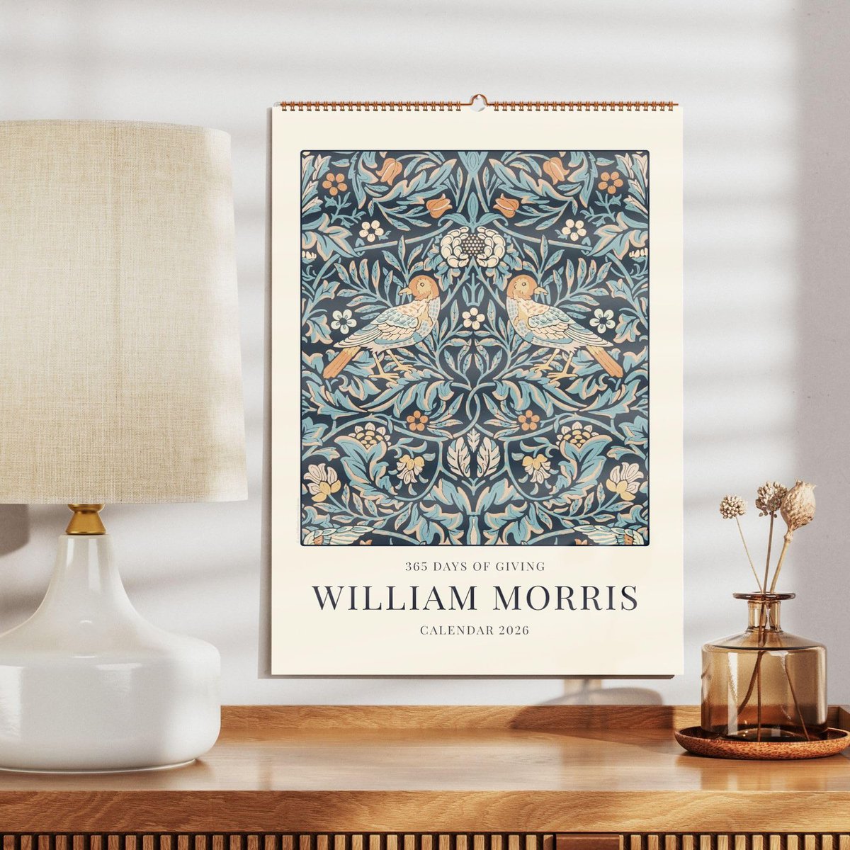 William Morris (1834-1896), a visionary of the Arts and Crafts movement, is celebrated for his timeless botanical art and intricate floral wallpaper designs. His legacy as a designer, poet, and artist continues to inspire lovers of classic British style and those seeking unique wall decor. This calendar brings the beauty of William Morris art into your home, making it a perfect gift for her, a thoughtful housewarming gift, or a special birthday present for anyone who appreciates elegant, nature-inspired design.