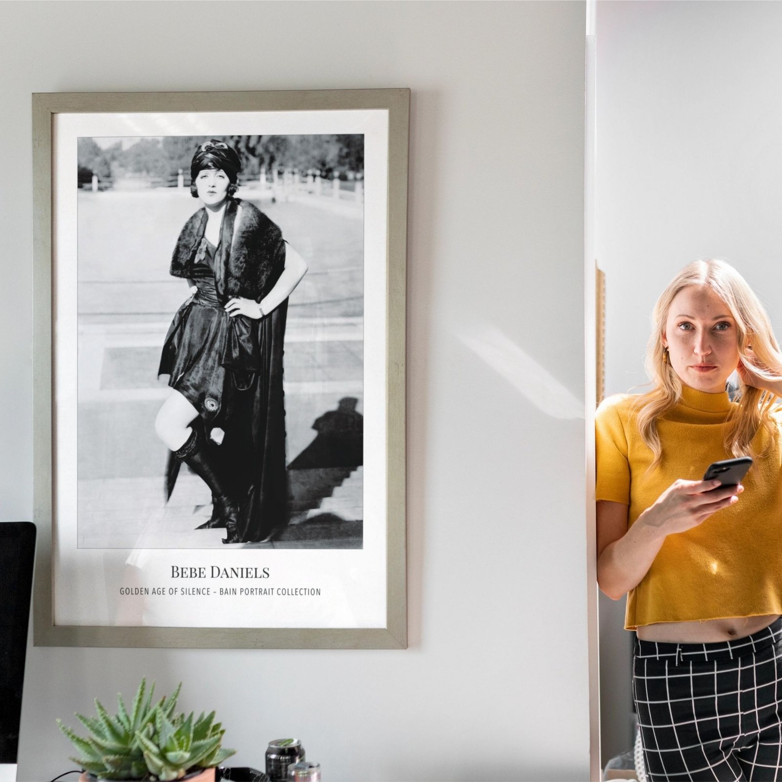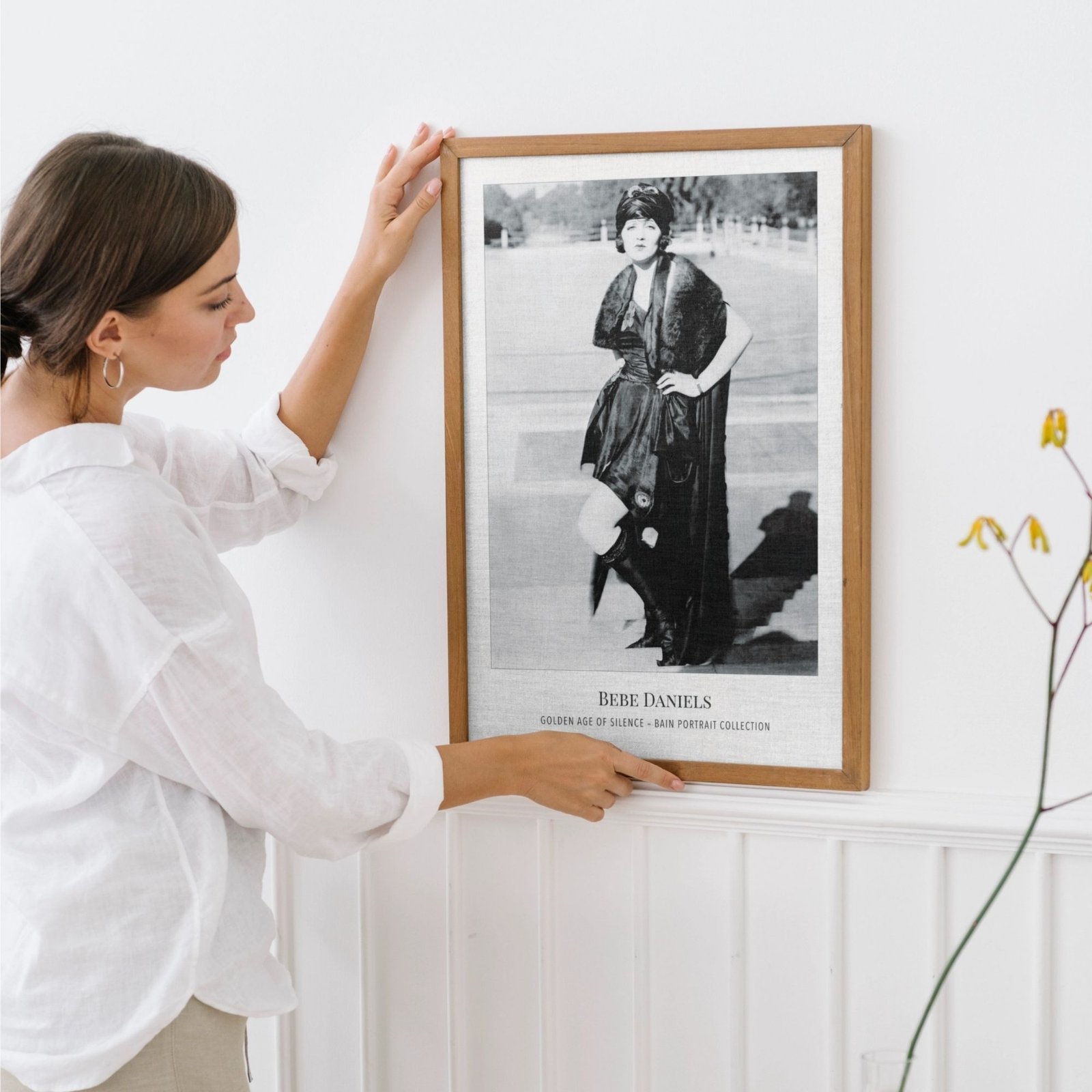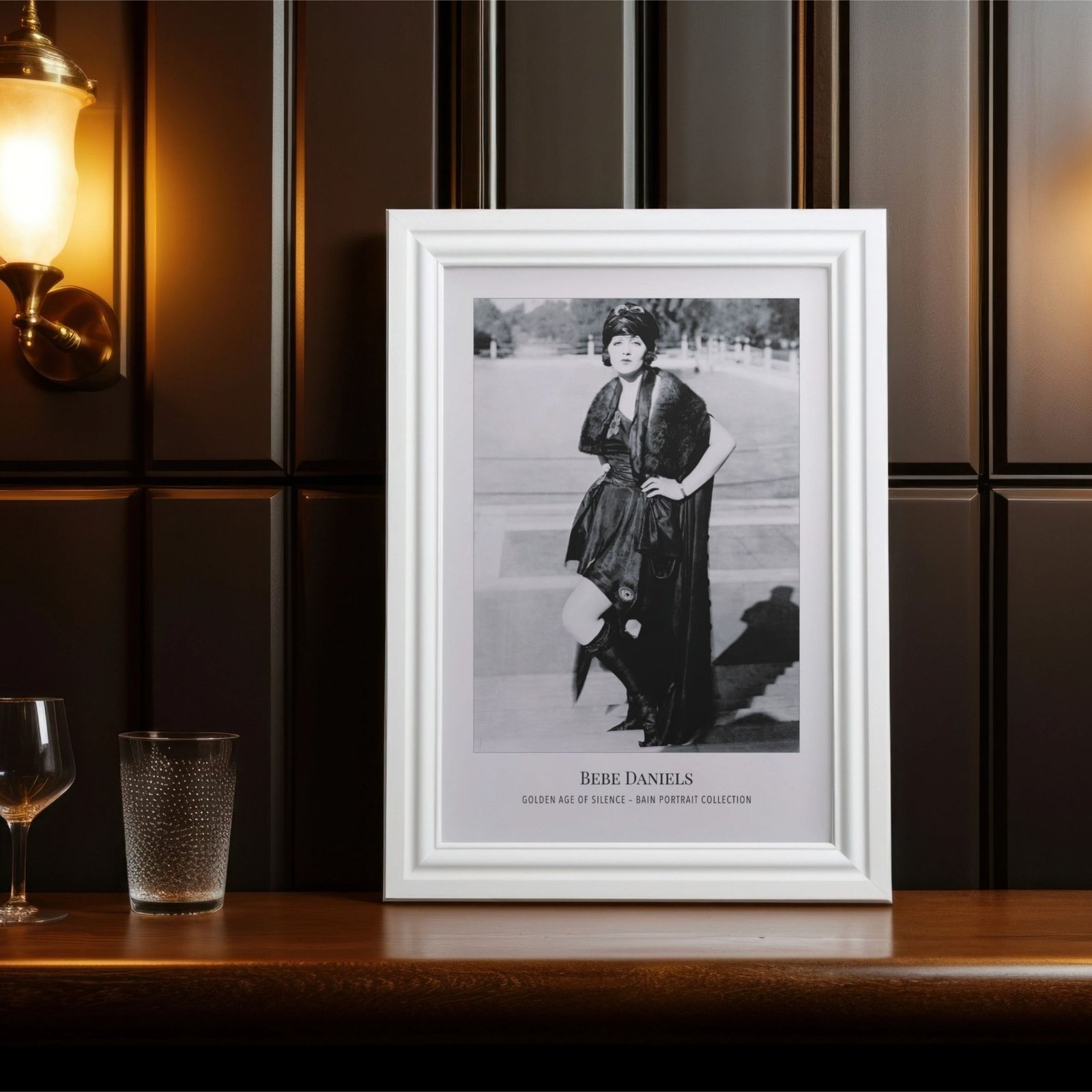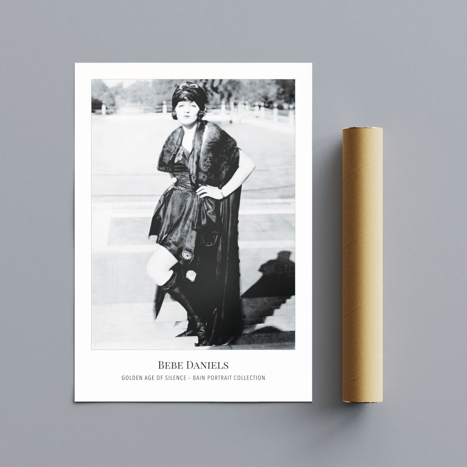 Bring the timeless elegance of vintage Hollywood into your home with this Bebe Daniels vintage film star poster, a classic movie print from the renowned Bain Portrait Collection. Bebe Daniels, a legendary vintage film star, began her career in Hollywood during the silent film era as a child actress, became a star in musicals such as Rio Rita (1929), and later gained fame on radio and television in Britain. Over the course of her 50-year career, Daniels appeared in 230 films, embodying the spirit and glamour of old Hollywood.