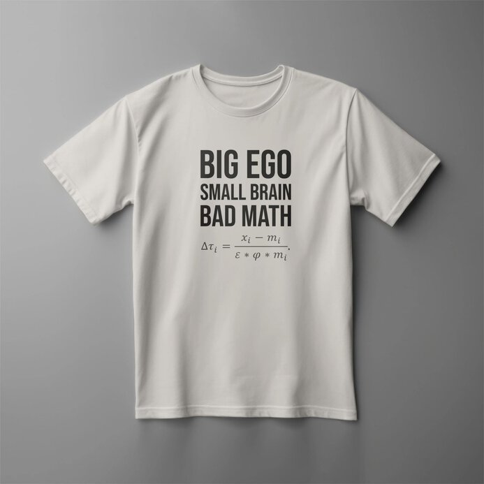 Make a bold statement with this witty t-shirt: “Big Ego, Small Brain, Bad Math.” Perfect for protests, rallies, or casual wear, this shirt humorously critiques flawed leadership and divisive policies.