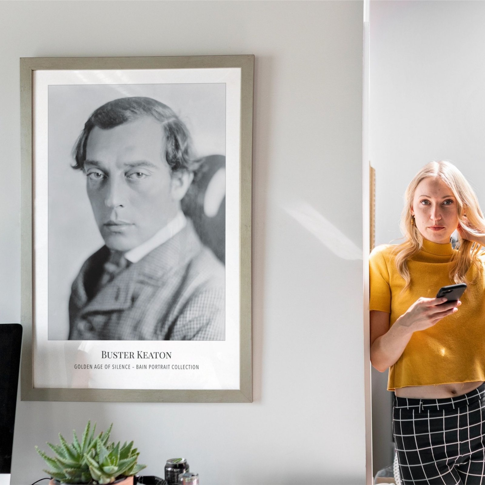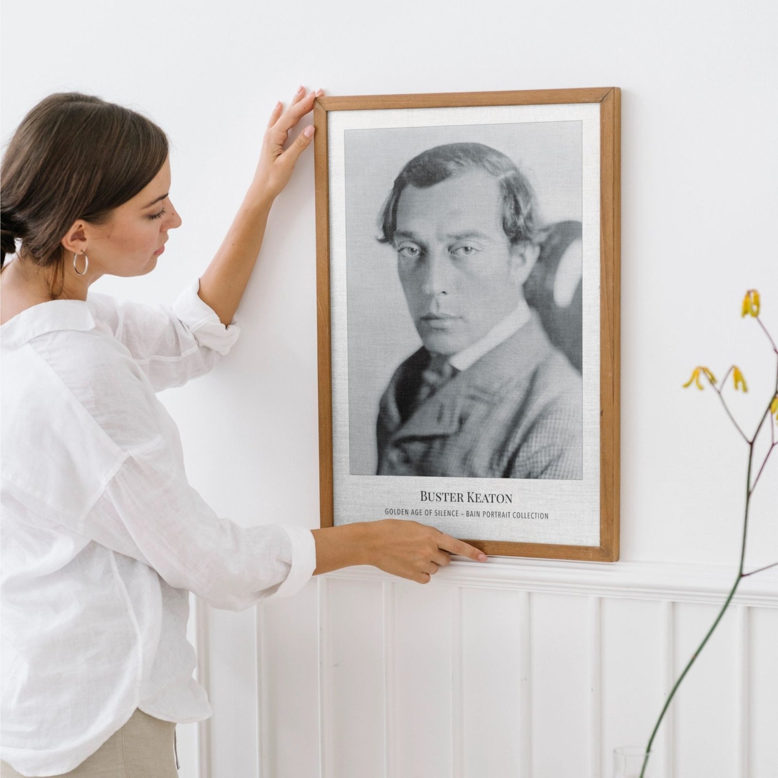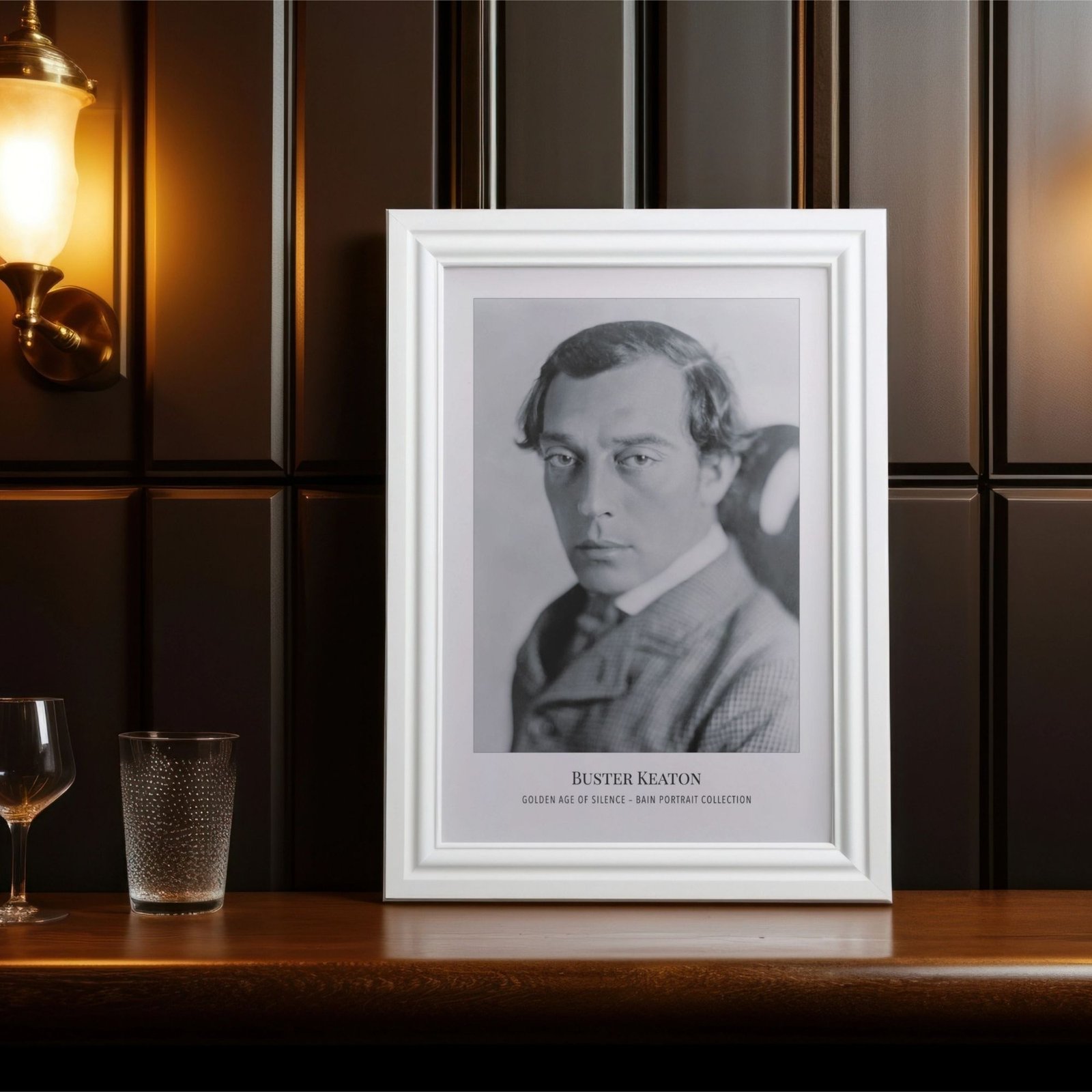 Vintage Hollywood art and classic movie print lovers will adore this Buster Keaton poster from the renowned Bain Portrait Collection—perfect old Hollywood wall decor for any film star enthusiast. Buster Keaton, known as “The Great Stone Face,” was a silent film legend whose deadpan expression and groundbreaking stunts made him one of the most influential and beloved figures in cinema history. His unique blend of physical comedy and cinematic innovation continues to inspire audiences and filmmakers around the world.