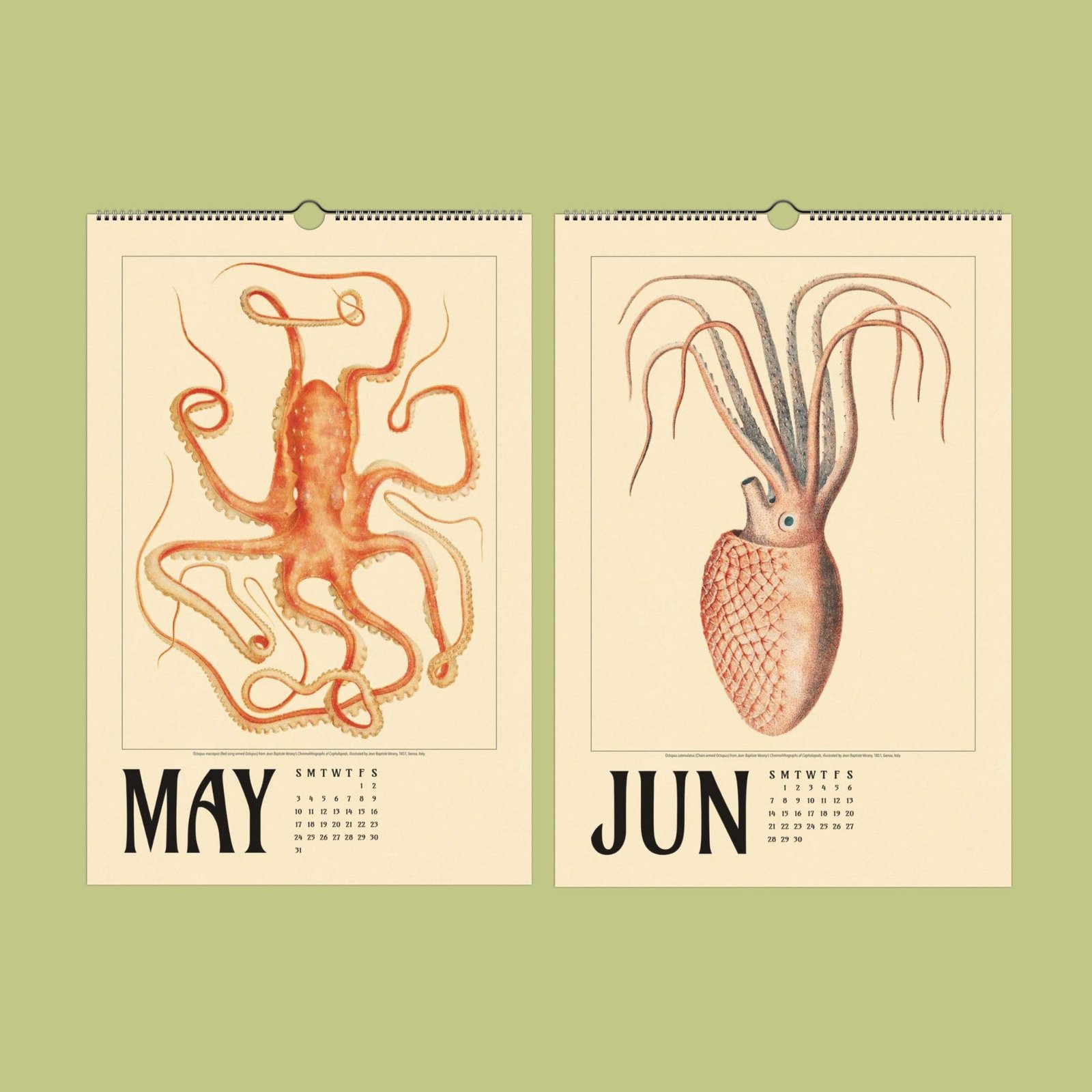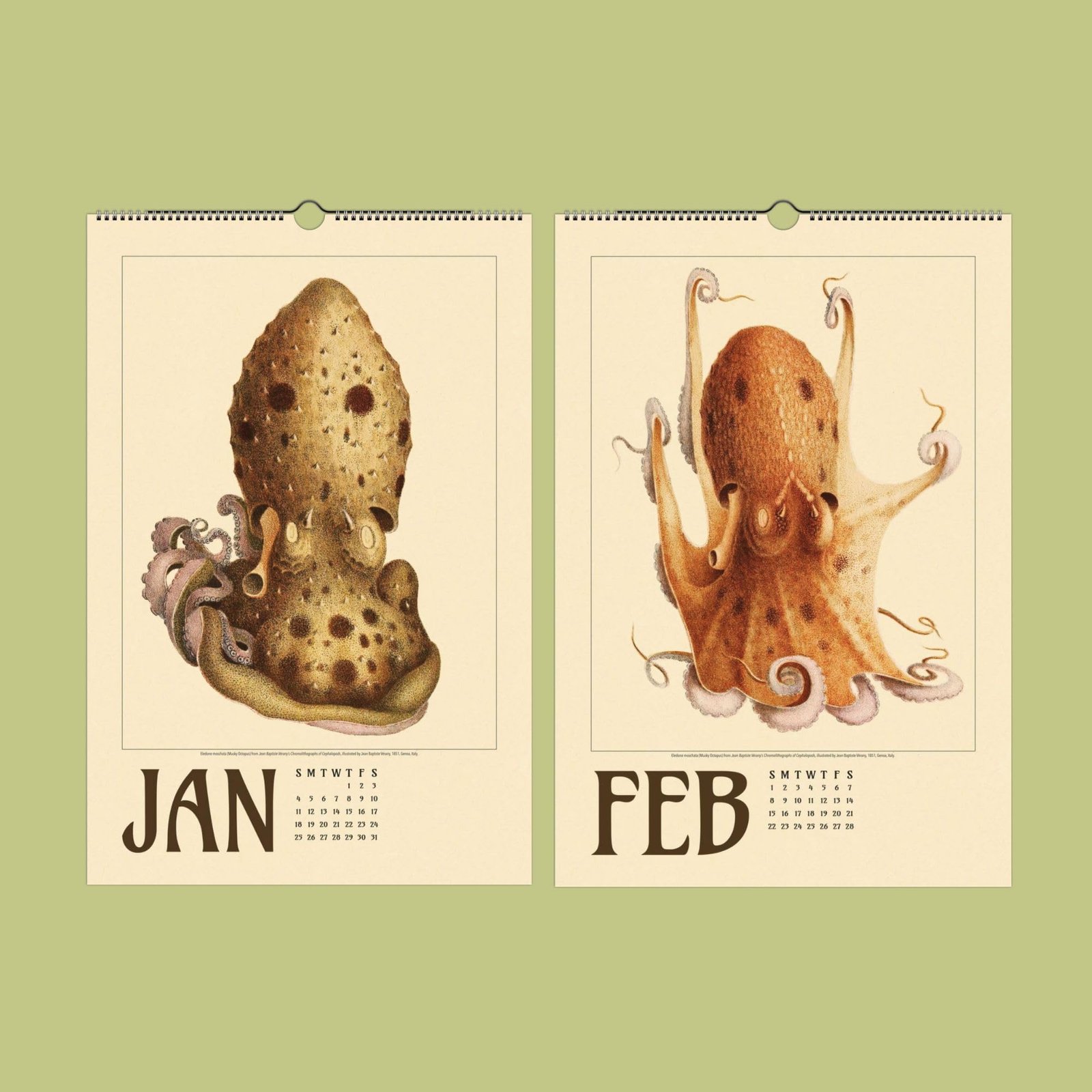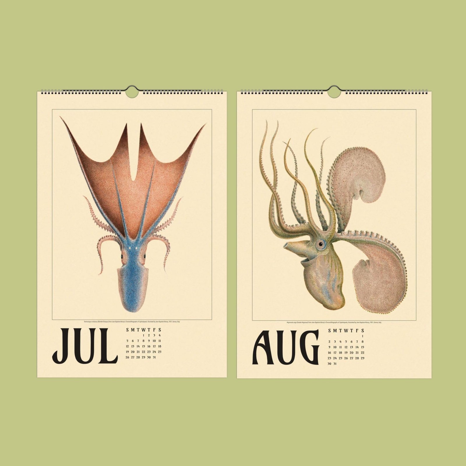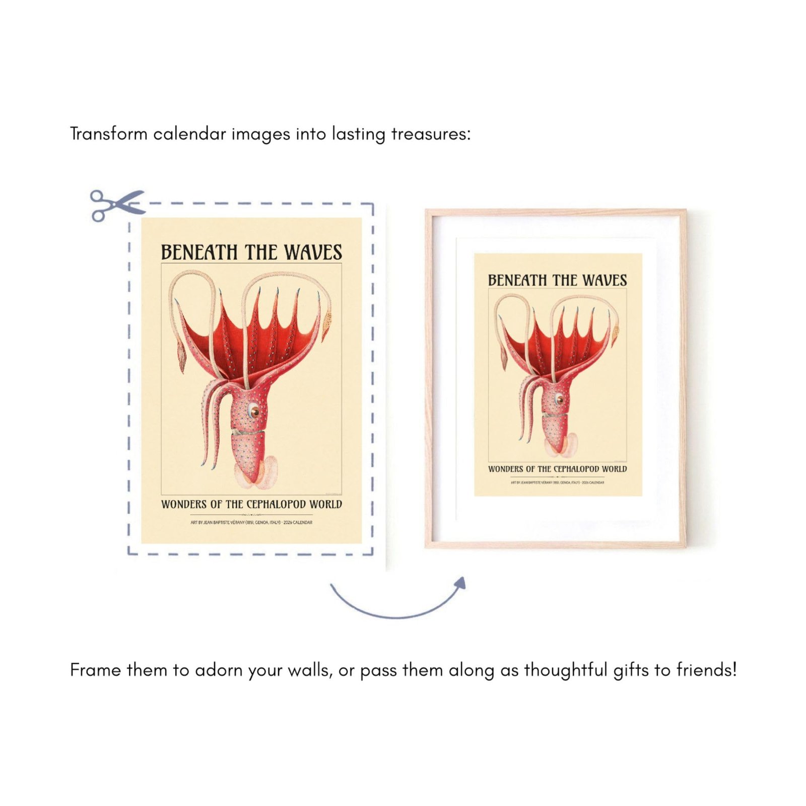 Discover the enchanting world of marine biology and natural history with this stunning wall calendar, featuring the extraordinary cephalopod art of 18th-century French artist Jean Baptiste Vérany (1800-1865). Renowned for his vibrant and scientifically accurate illustrations of sea creatures, Vérany’s work captures the grace, color, and mystery of the undersea world. His legacy as a pioneer in cephalopod anatomy and marine art makes this calendar a unique treasure for lovers of ocean life, natural history, and French artistry. Perfect for marine biologists, beach house decor enthusiasts, and anyone seeking an octopus gift or a touch of the sea in their home.