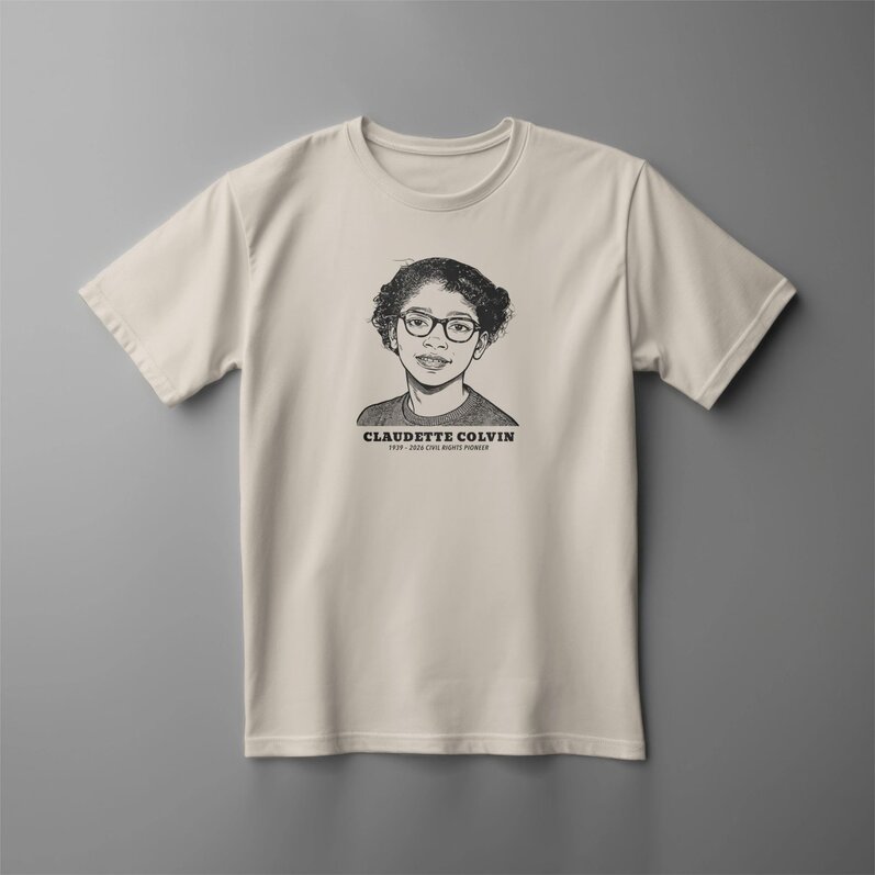 Claudette Colvin (1939–2026) was just 15 when she refused to give up her seat on a segregated bus in Montgomery, Alabama on March 2, 1955—months before the better-known Rosa Parks arrest. Her courage didn’t stop there: she became one of the plaintiffs in Browder v. Gayle (1956), the federal case that helped end bus segregation. This shirt is a wearable reminder to tell the full story of the civil rights movement and to celebrate the women who pushed history forward.