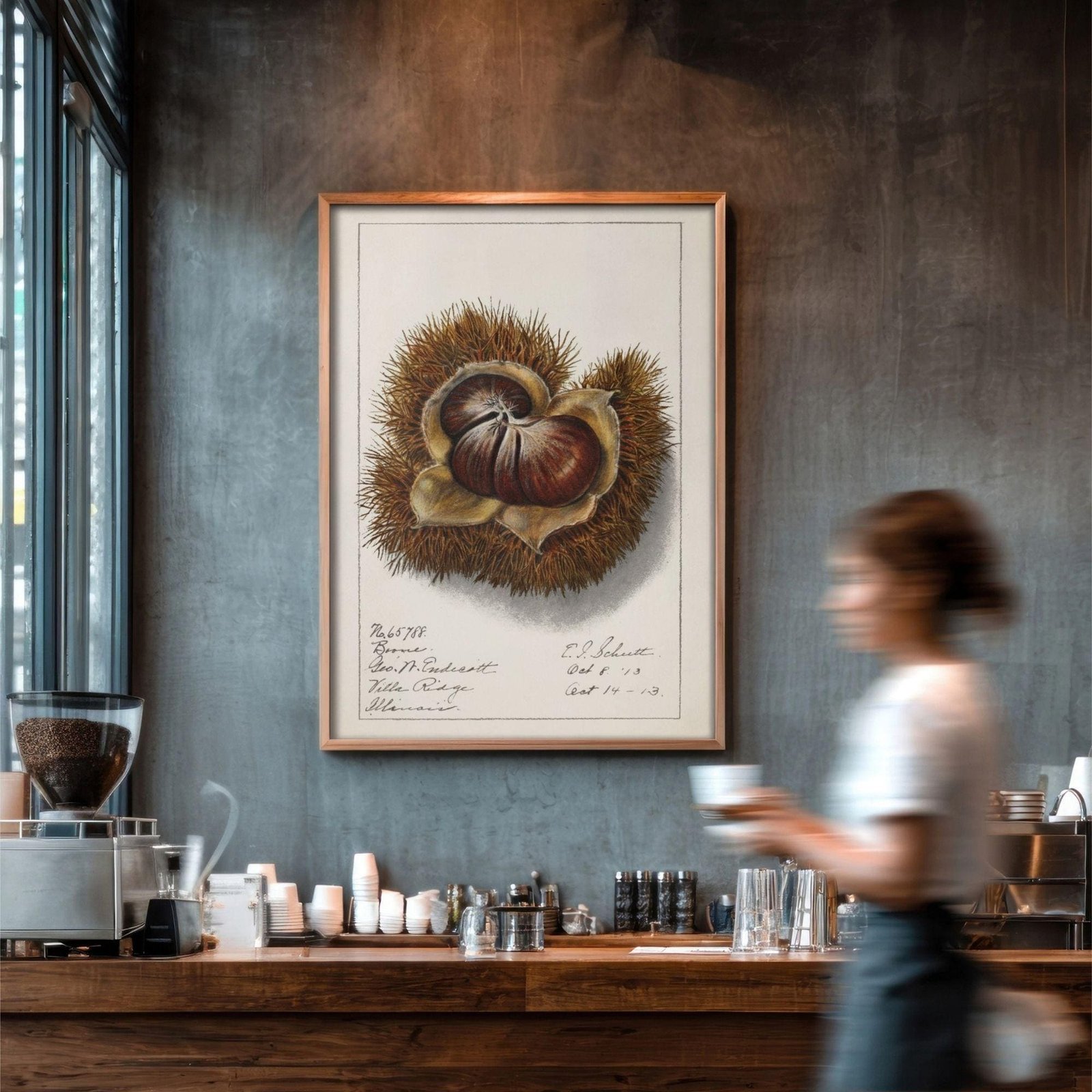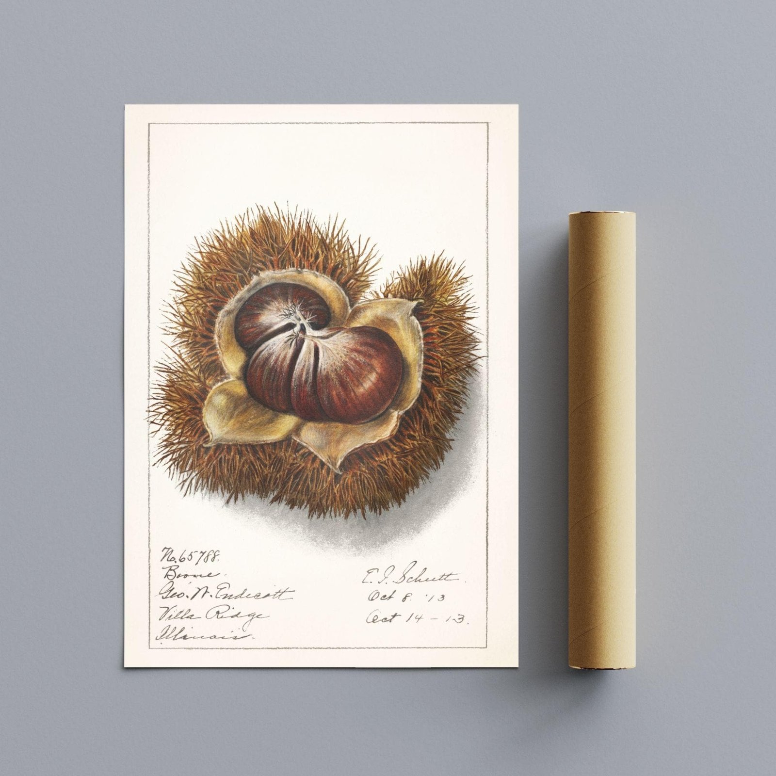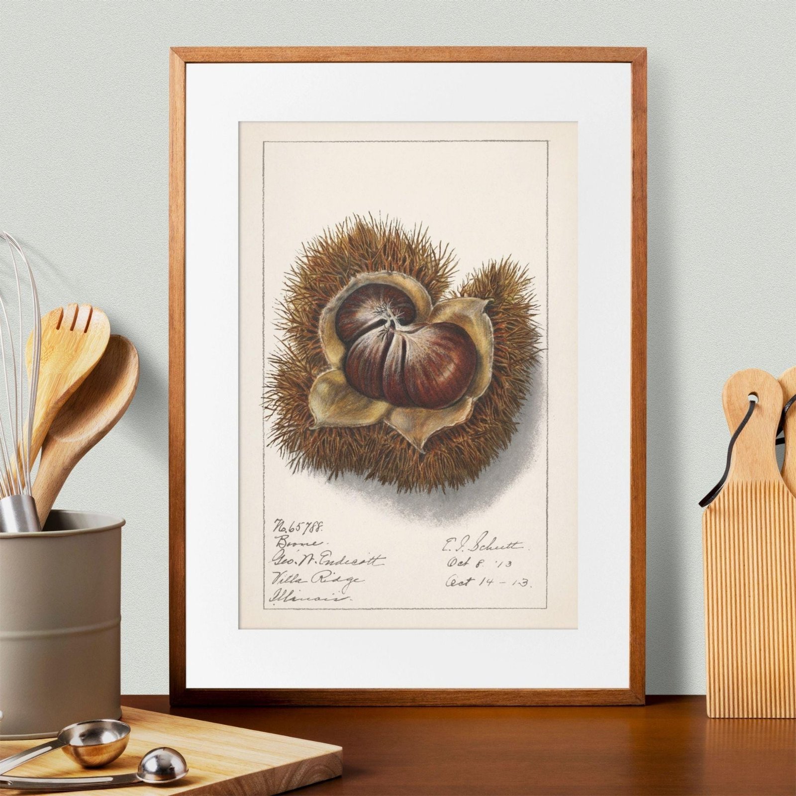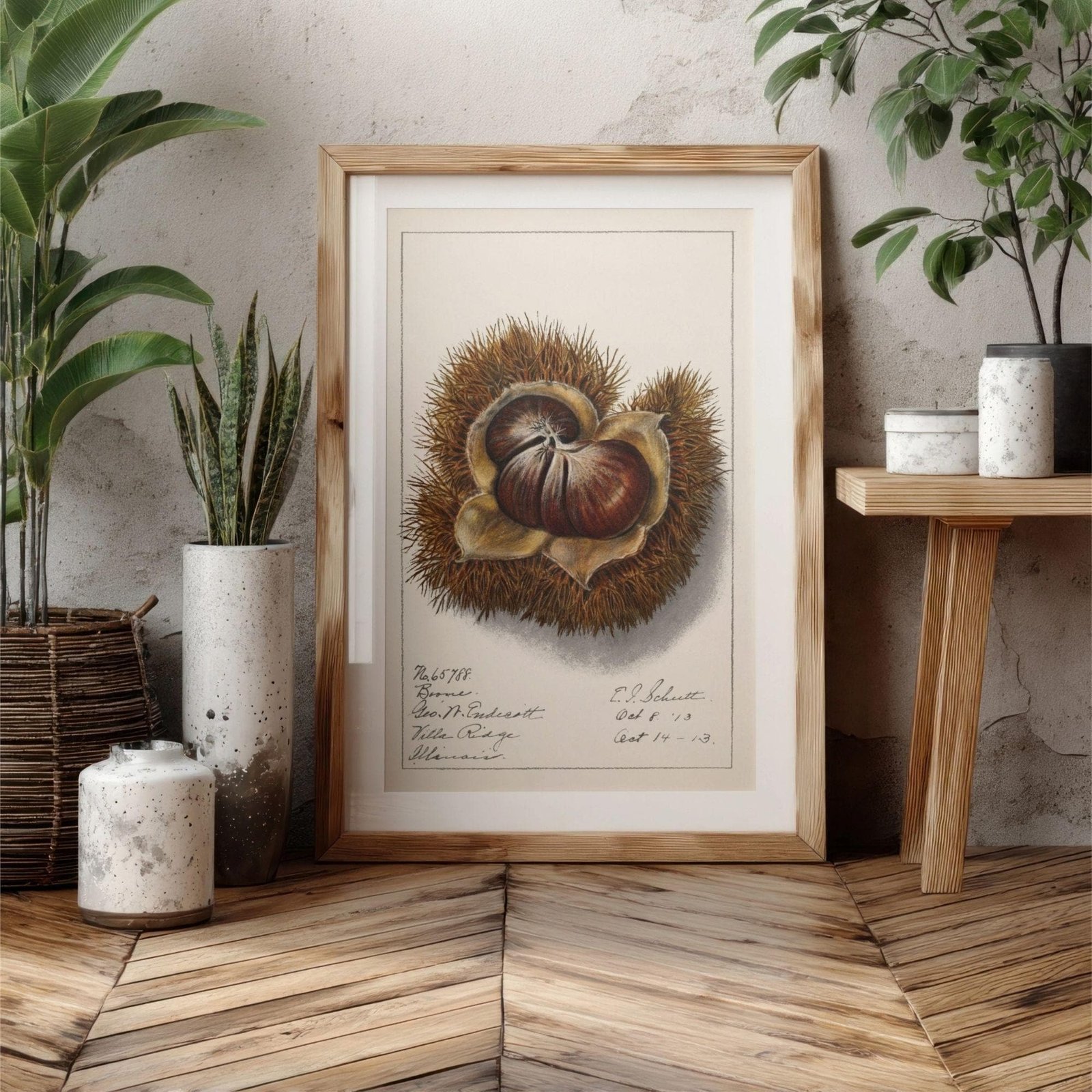 Illustrated chestnut with spiky husk in frameCountry Life Educational Poster – Chestnut