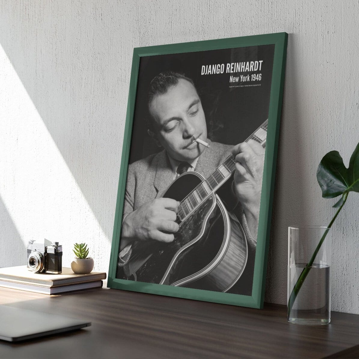 For admirers of this jazz legend, we offer a meticulously crafted vintage poster that encapsulates Django Reinhardt‘s indomitable spirit and style. This piece serves as both a striking addition to your decor and a tribute to his enduring influence on gypsy jazz. Ideal for living rooms or offices, it also makes a thoughtful gift for music lovers. This poster is part of a curated collection of jazz prints, allowing enthusiasts to celebrate the golden age of jazz through stunning visual artistry.