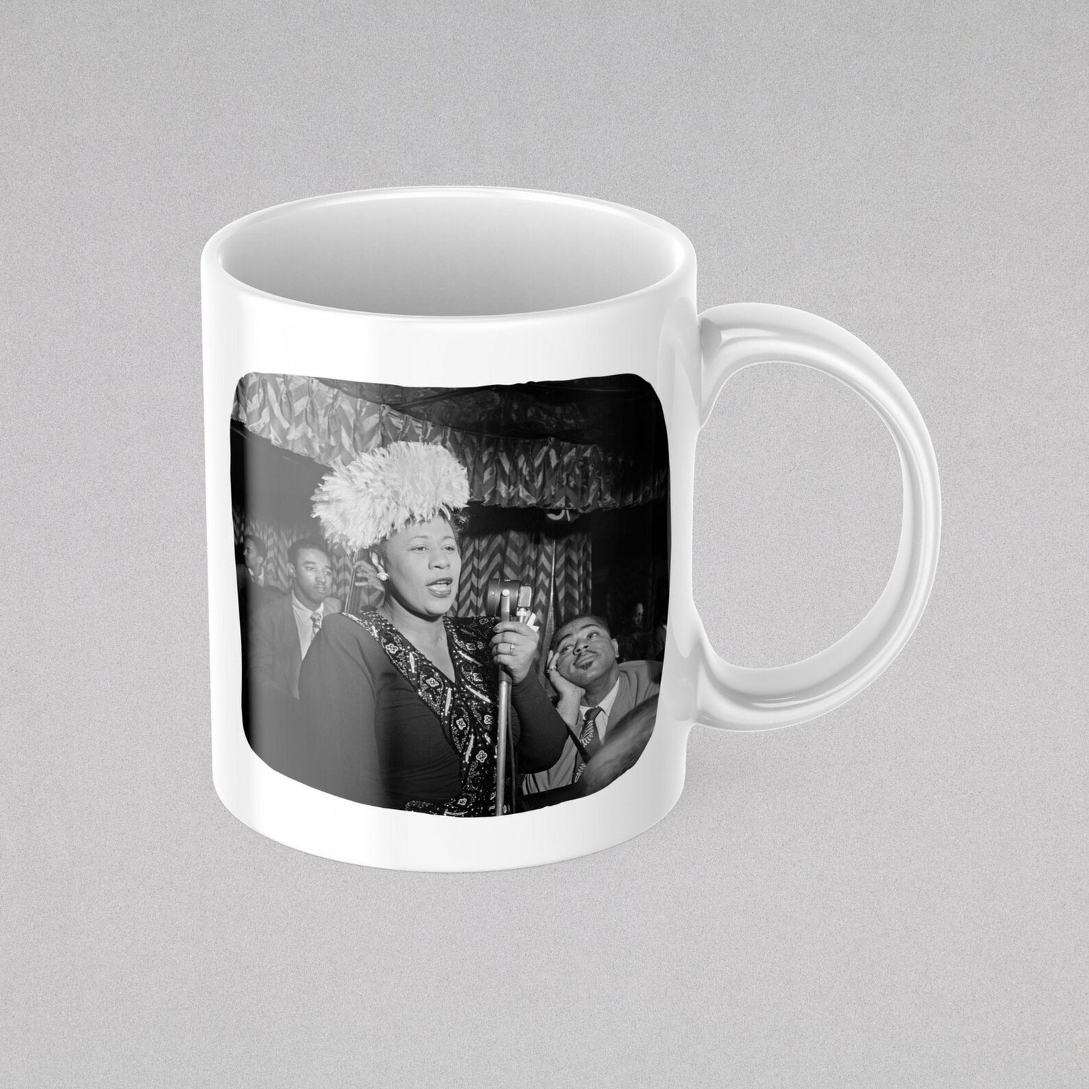 Celebrate the legacy of Ella Fitzgerald, the “Queen of Jazz” and one of the most iconic vocalists in music history. Born in 1917 in Newport News, Virginia, Fitzgerald’s career spanned over six decades, earning her 13 Grammy Awards and the admiration of audiences worldwide. Known for her pure tone, impeccable diction, and innovative scat singing, she brought timeless classics like “A-Tisket, A-Tasket” and “Summertime” to life. This mug is a perfect gift for fans of Ella Fitzgerald and lovers of jazz and timeless music.