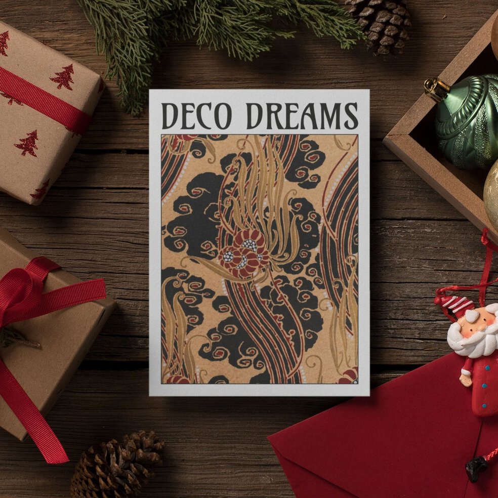 Our Emile-Allain Séguy Samarkande Edition – Gilded Swirls greeting card set includes 10 folded cards, each featuring a mesmerizing fusion of Art Nouveau elegance and Persian-inspired ornamentation. With flowing golden waves intertwined with intricate floral details, this design evokes the rich, rhythmic movement of early 20th-century decorative arts. Printed using the pochoir technique, Séguy’s patterns bring a sophisticated touch to every note you send.