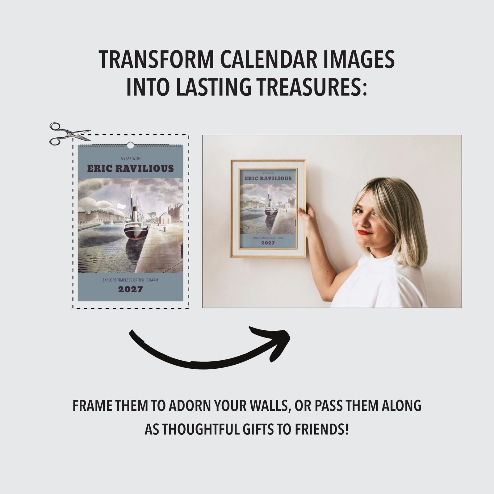 This wall calendar features a curated selection of Ravilious’s most iconic images, making it a true conversation starter for any space. Each month reveals a new masterpiece, and when the year is complete, the images can be cut out and framed—perfect for your own home or as thoughtful gifts for friends. Bring timeless British artwork into your daily life with this elegant calendar.