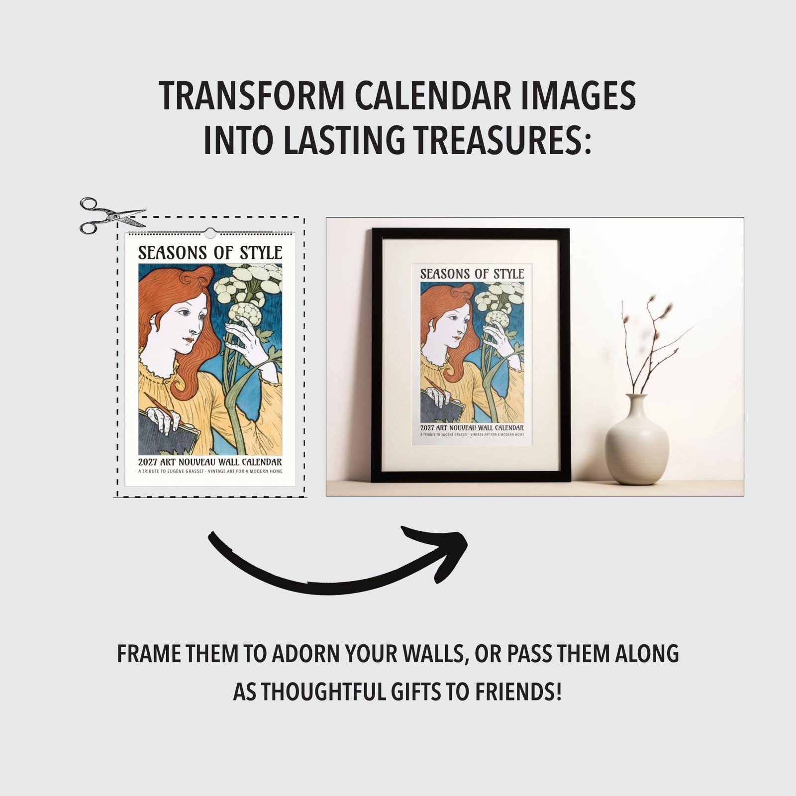 We have curated a selection of Grasset’s most captivating illustrations, ensuring each month is a conversation starter and a celebration of floral ornament and belle époque beauty. Once the year is complete, simply cut out your favorite images to frame and enjoy as lasting art nouveau treasures—ideal for your own home or as a thoughtful gift for friends who appreciate the enduring charm of Eugène Grasset and Belle Époque art