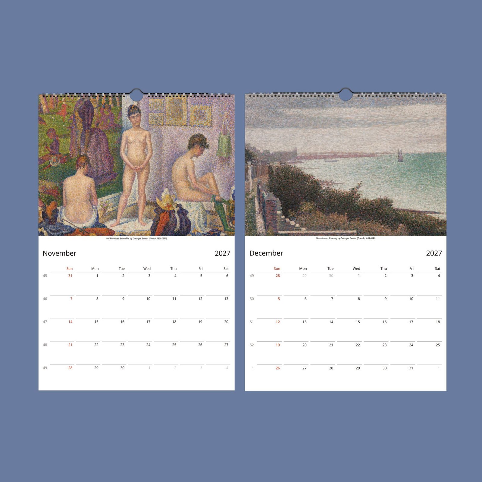 Perfect for your home or office, this calendar doubles as frameable prints, bringing timeless art and sophistication into your space. Whether you’re an admirer of Seurat’s genius or seeking a unique gift, this calendar is a must-have for celebrating art all year long!