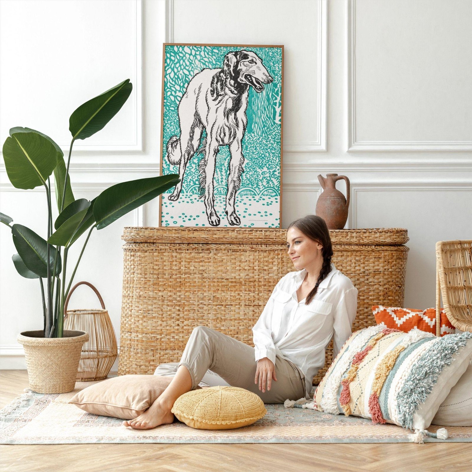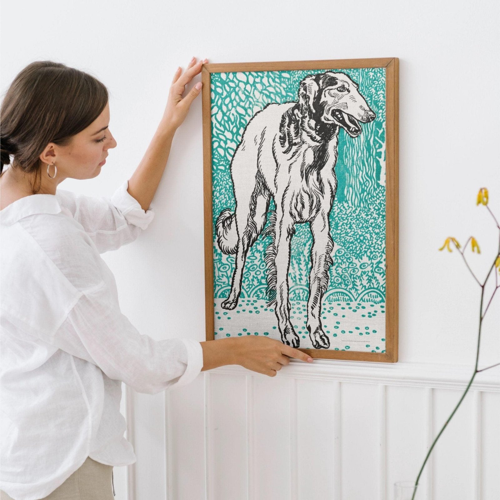 Meet this cute Greyhound—a charming woodcut-style art print by Moriz Jung, a celebrated Austrian artist known for playful, character-filled animal designs. Ready to frame, this dog art print adds warmth to your space and makes a standout choice for living room wall art and thoughtful gifting.