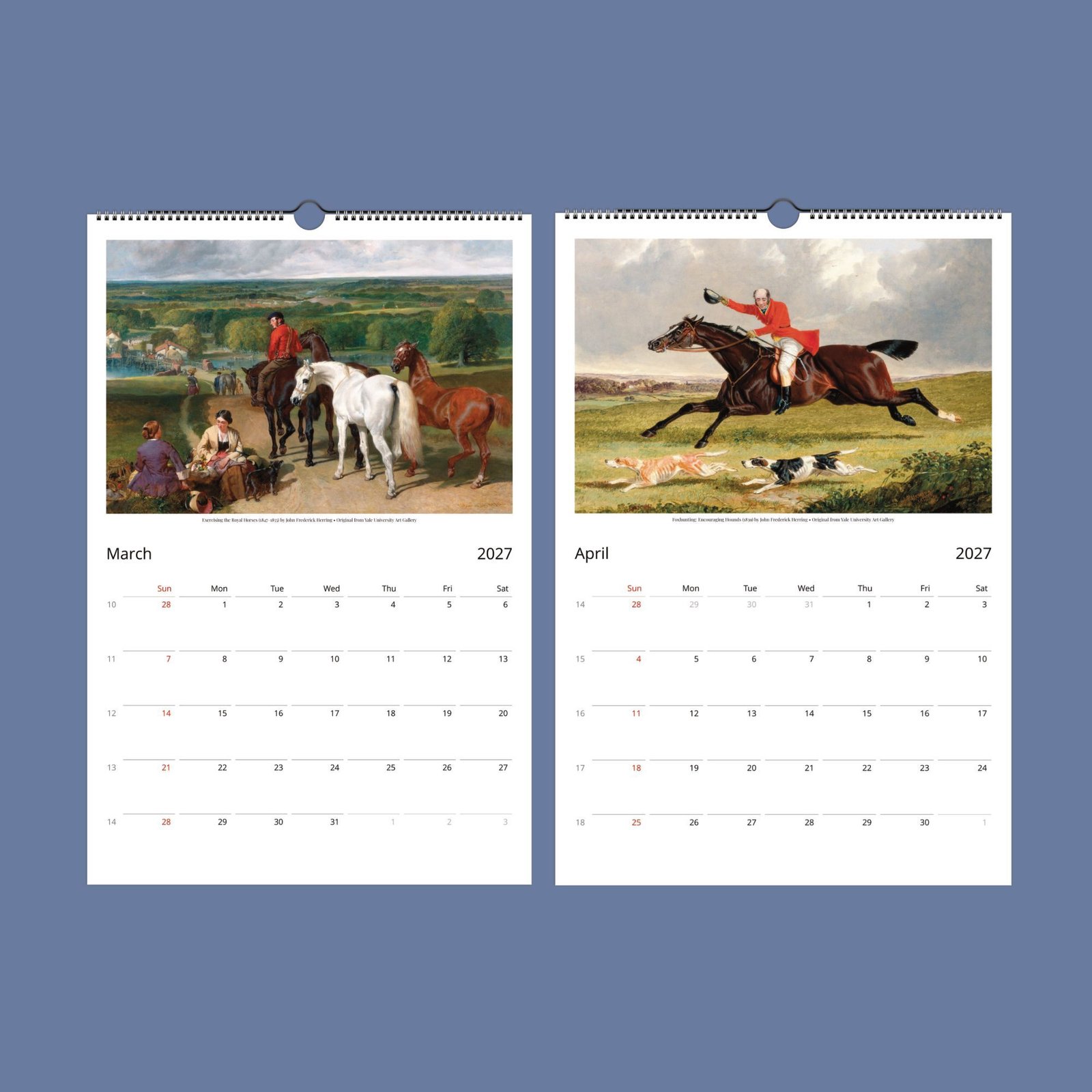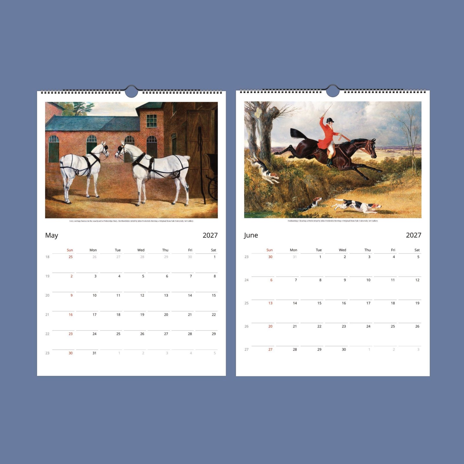 We have curated a selection of Herring’s most captivating horse illustrations to create a calendar that is more than just a way to mark the days—it’s a true conversation starter and a thoughtful horse lovers gift. Once the year is complete, simply cut out your favorite images to frame and enjoy as lasting equestrian wall art, or share them as special presents with friends who appreciate vintage charm and unique horse gifts. Bring a touch of antique style art and equestrian beauty into your home with this versatile and inspiring calendar.