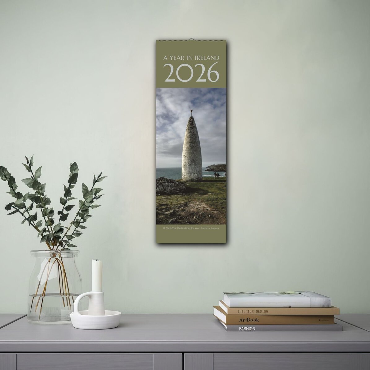 2026 Ireland calendar on minimalist wallIreland Wall Calendar – Irish Landscape, Emerald Isle