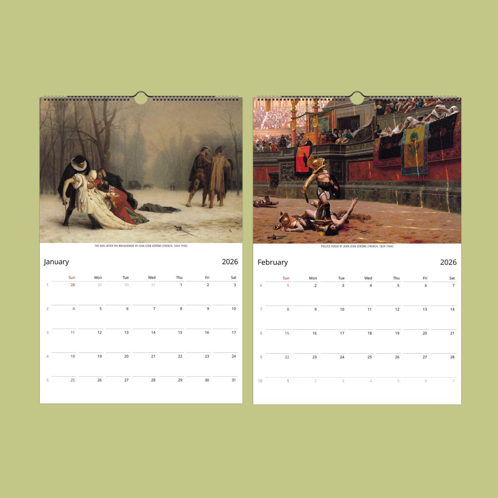Epic Visions calendar 2026, art-themed decorJean-Léon Gérôme Wall Calendar
