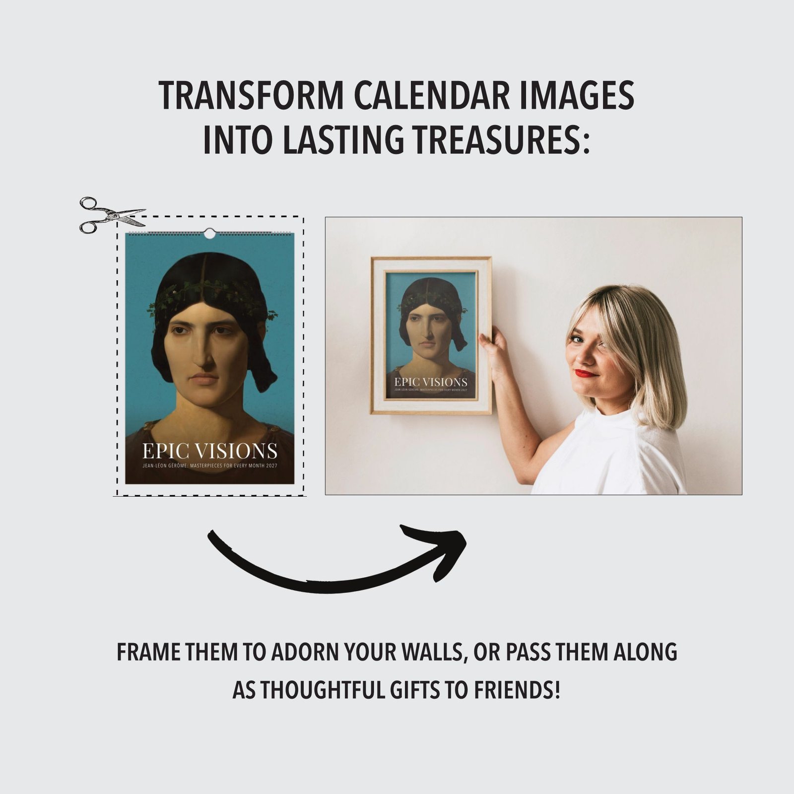 This calendar showcases a carefully curated selection of Gérôme’s most captivating images, transforming any space into a gallery of timeless beauty and conversation. Each month offers a new masterpiece to admire, and when the year is complete, simply cut out your favorite images to frame and enjoy as unique art prints—perfect for your home or as thoughtful gifts for friends. Elevate your décor and celebrate the legacy of a true icon of academic and oriental art—add this calendar to your collection today!