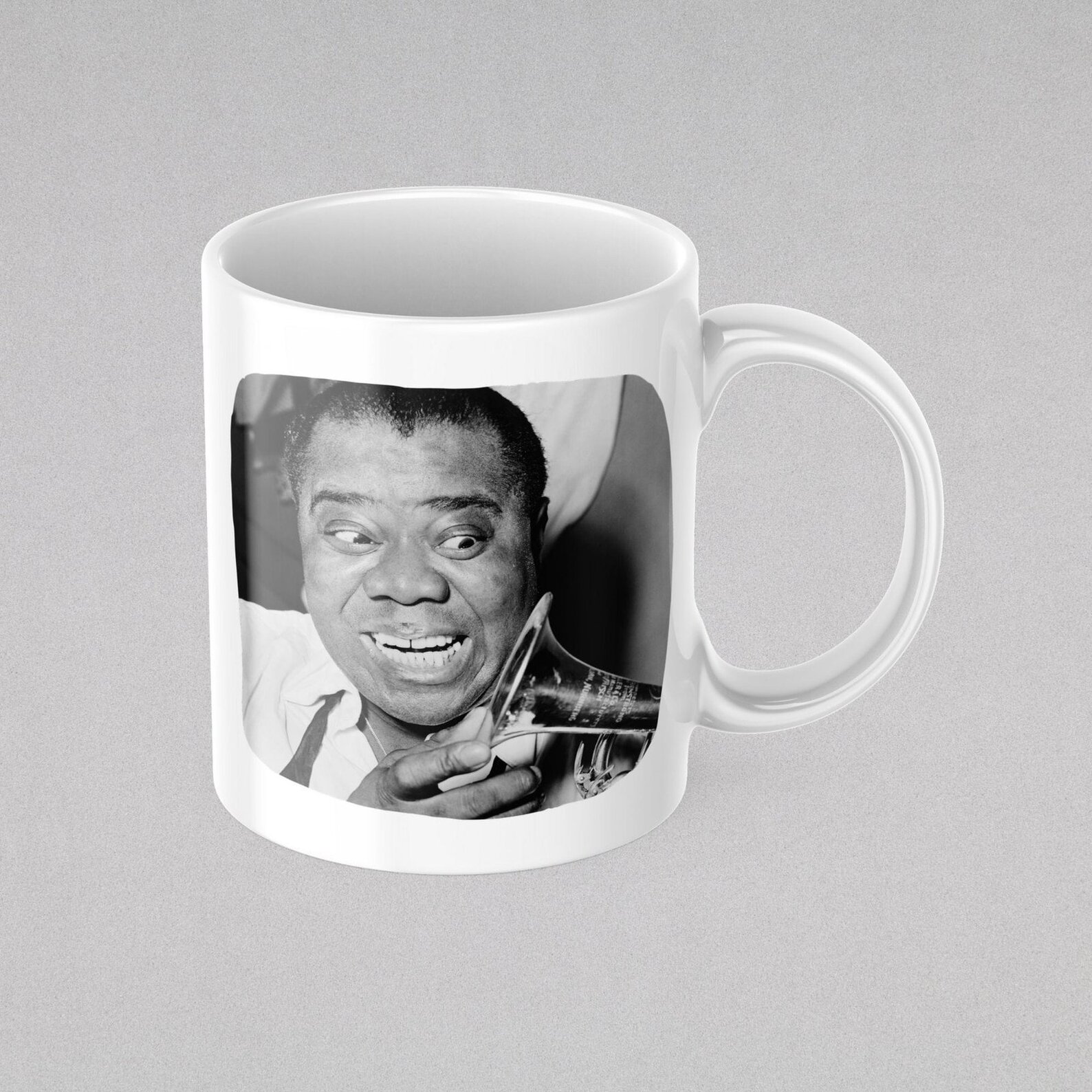 Celebrate the legacy of Louis Armstrong, one of the most influential figures in jazz history. Born in 1901 in New Orleans, Louisiana, Armstrong was celebrated for his virtuosic trumpet playing and distinctive, gravelly voice. Known as “Satchmo,” he shaped the landscape of jazz with his innovative approach to music and unforgettable performances. His timeless classics, including “What a Wonderful World” and “Stardust,” continue to inspire audiences worldwide. This mug is a perfect gift for fans of Louis Armstrong and lovers of jazz and timeless music.