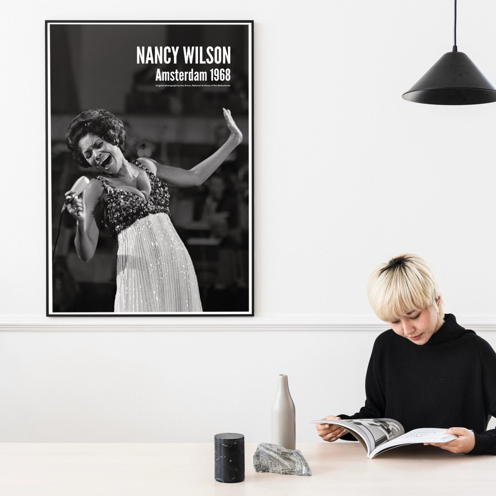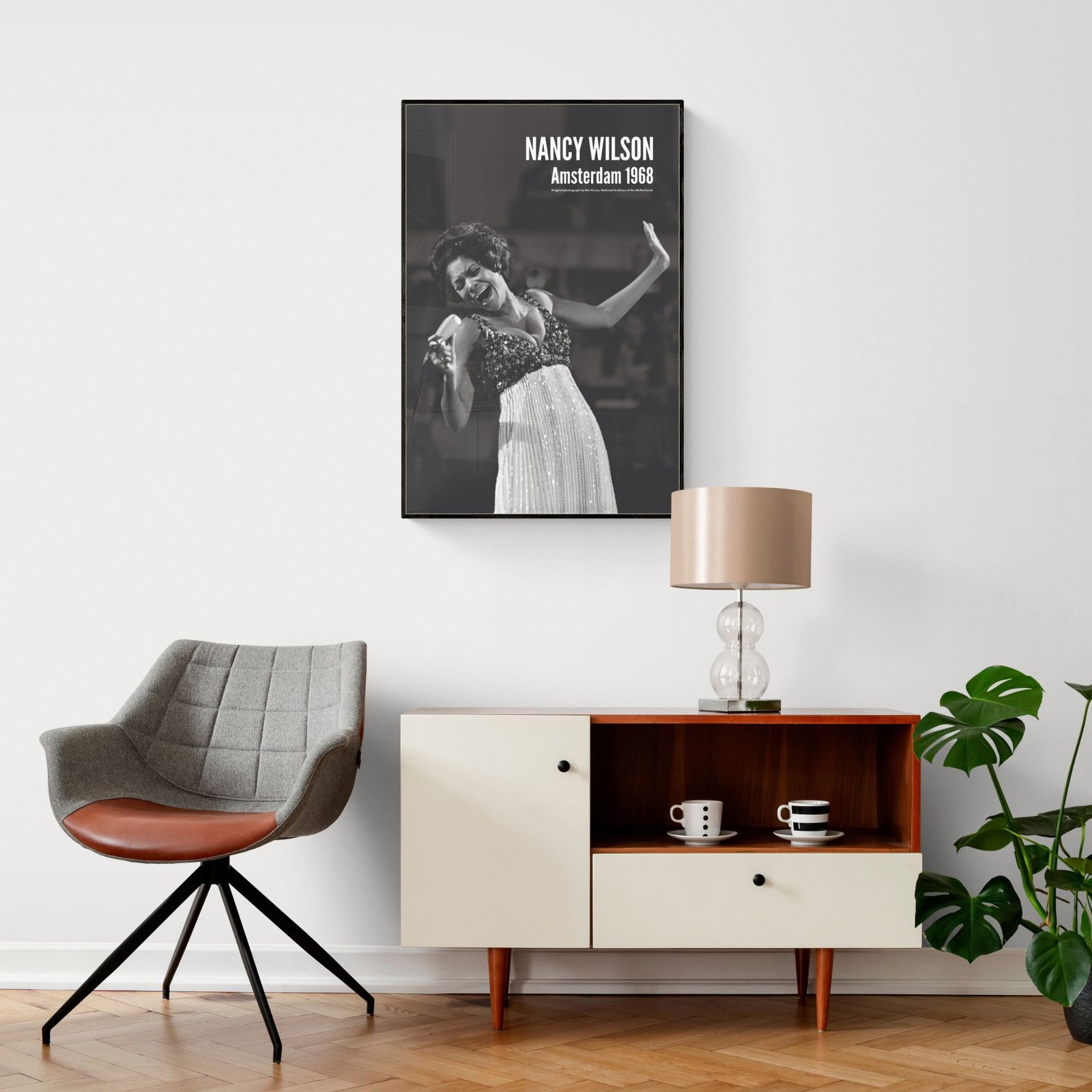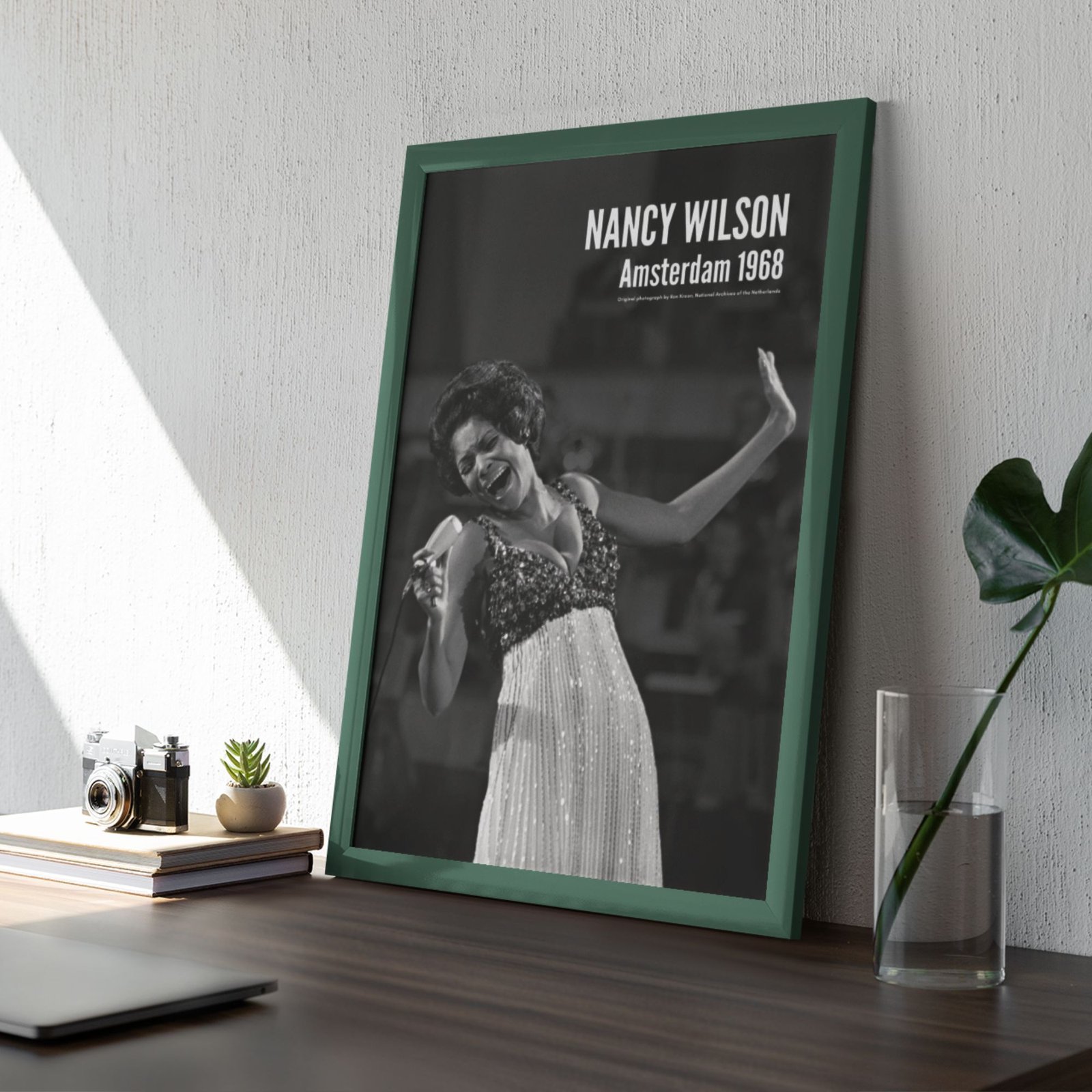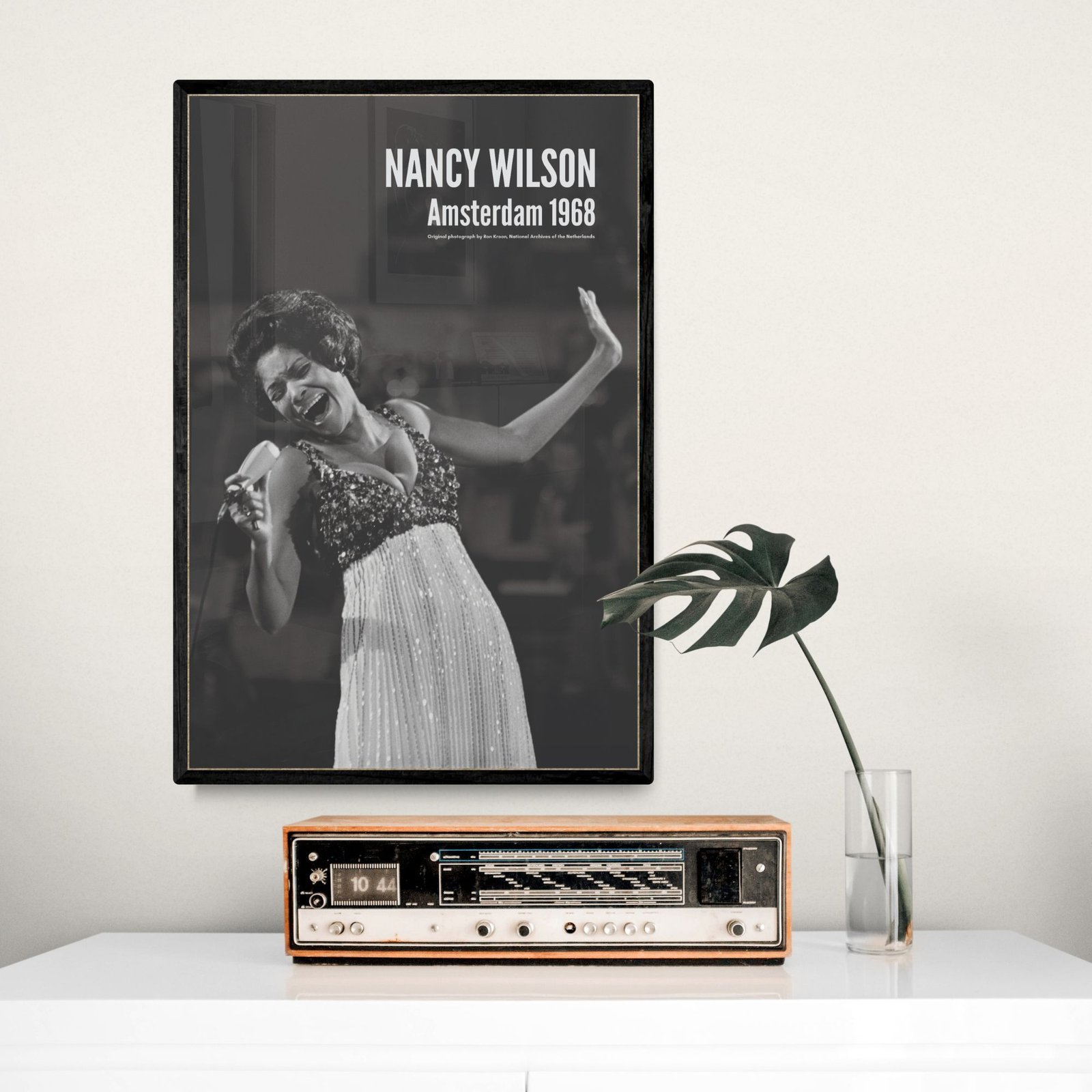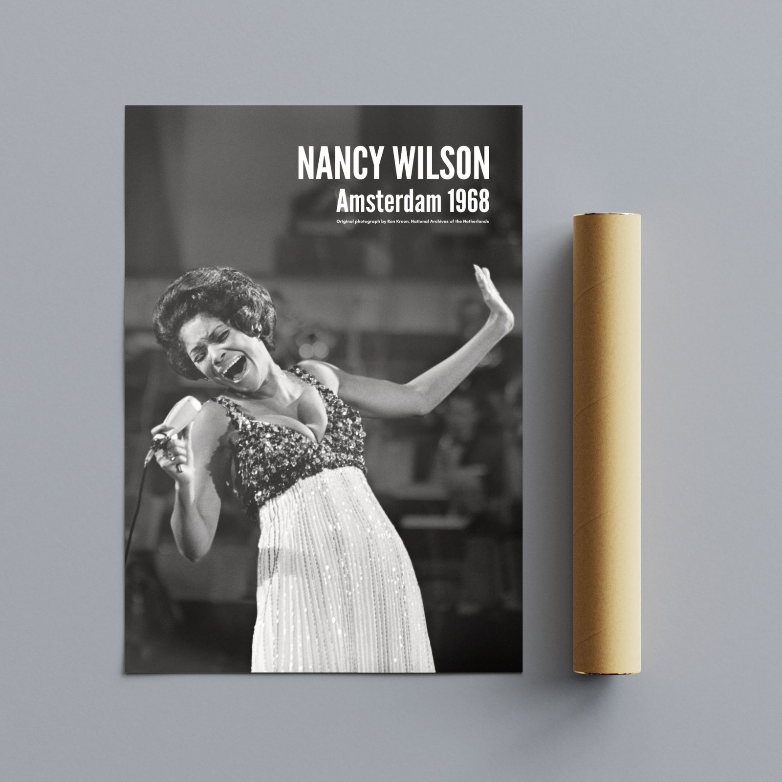 Nancy Wilson (1937–2018) was an American singer whose signature style blended jazz sophistication with pop elegance and soul warmth, earning her a reputation for impeccable phrasing and a voice that could sound both intimate and commanding. Whether interpreting a ballad or swinging through an uptempo standard, Wilson brought clarity, class, and emotional precision—an artist who made every lyric feel personal. This music poster captures her performing at the Grand Gala du Disque at the RAI in Amsterdam on March 8, 1968, photographed by Ron Kroon, preserving a luminous onstage moment from a true vocal icon.