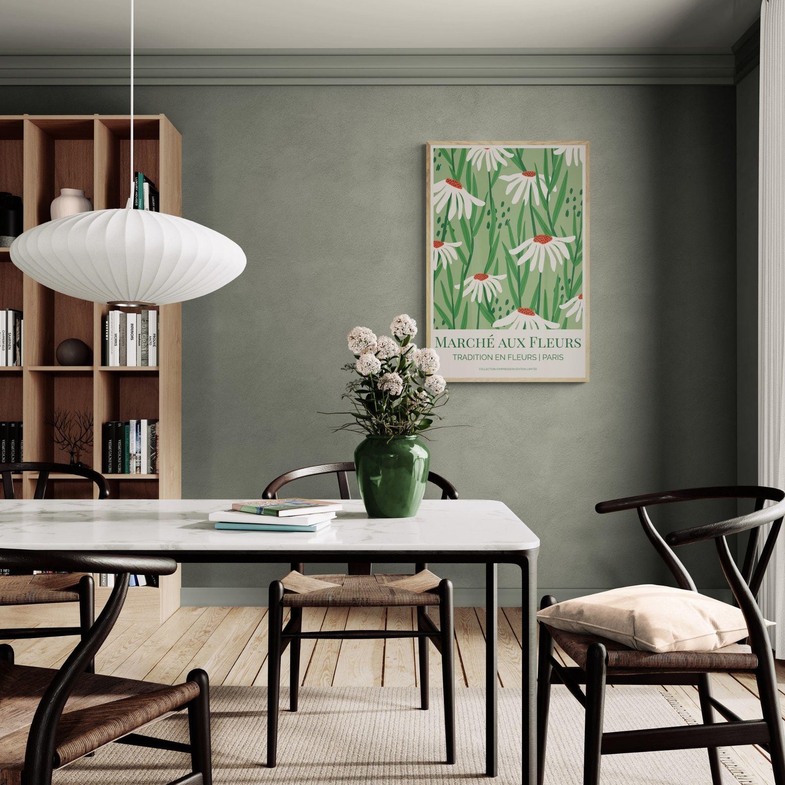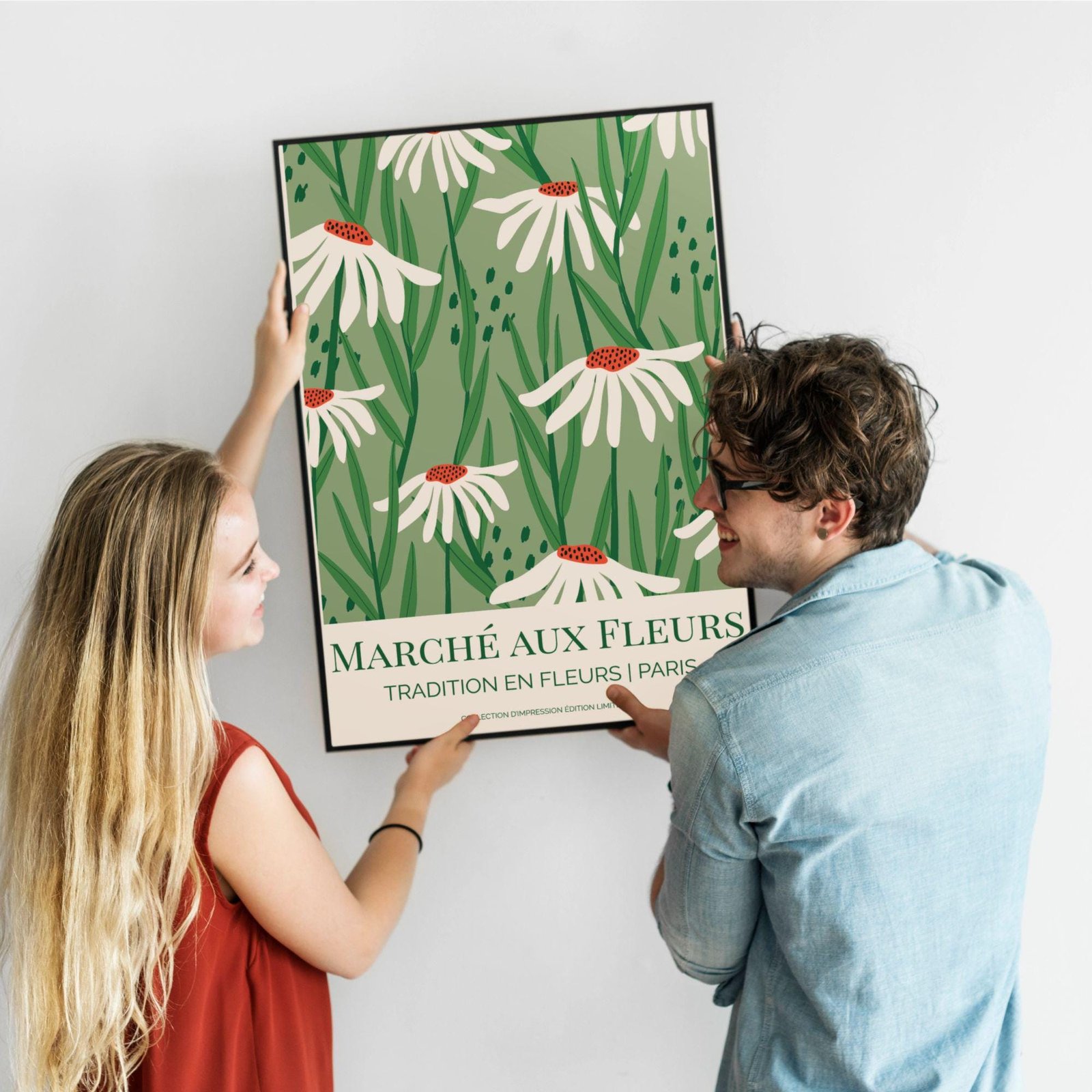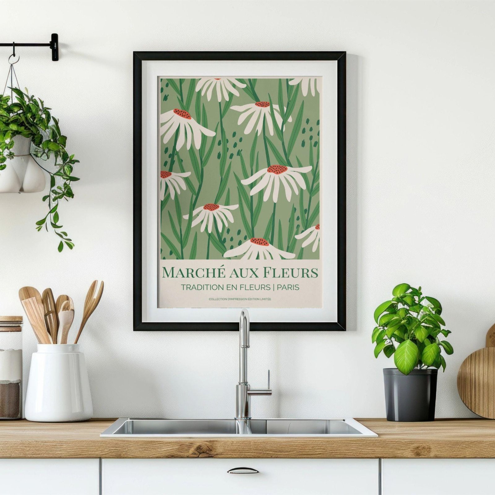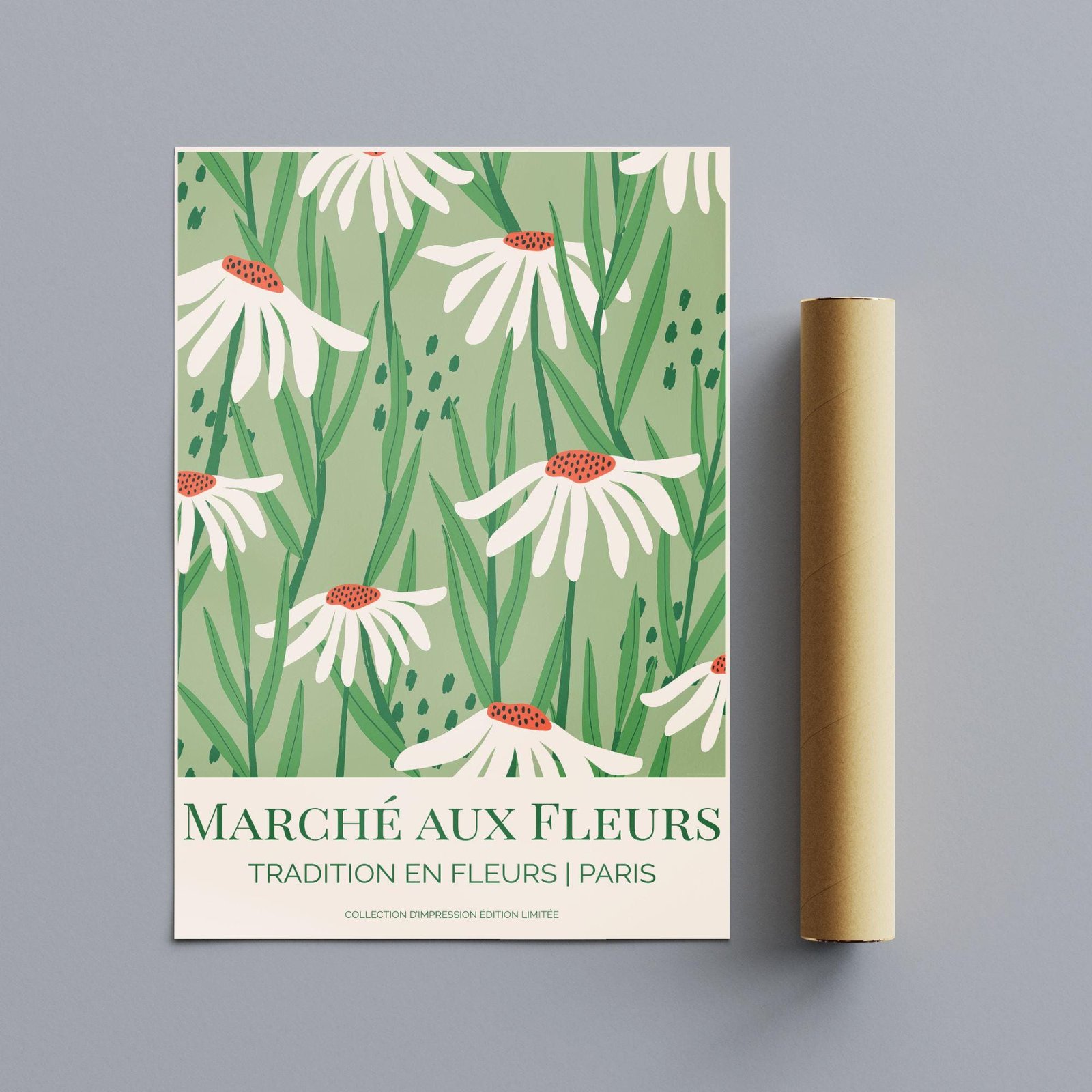Flower market poster inspired by Paris’s Marché aux Fleurs—one of the city’s most beloved flower markets, cherished for generations as a place to wander among seasonal blooms and bring home a little “tradition en fleurs.” Tucked into the heart of Paris, this historic market embodies the everyday romance of the city: simple bouquets, fresh greenery, and that quiet moment of choosing flowers as part of daily life.