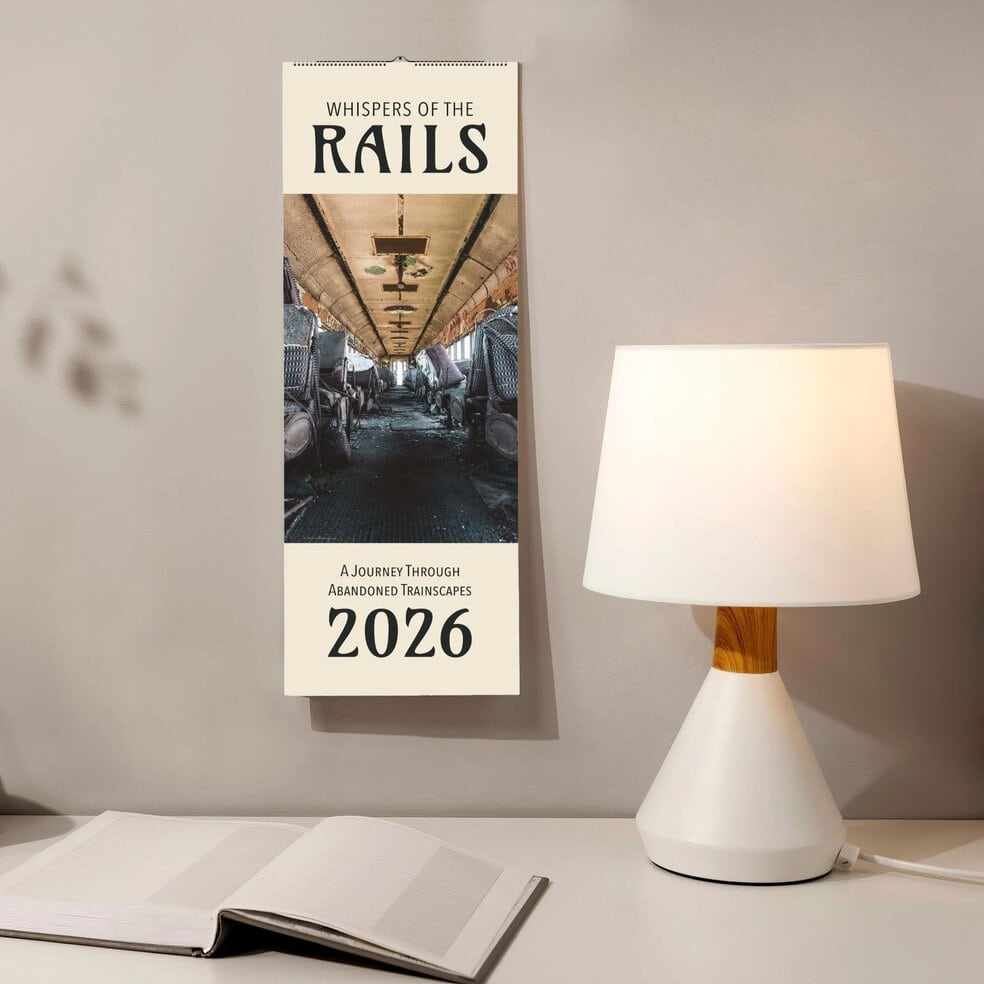 Are you looking for a gift for a train fan? Step into the world of abandoned stations and historic trains with our train calendar, a monthly calendar designed for those captivated by the mystique of forgotten railways and vintage locomotives. Each month reveals a new, atmospheric photograph of a historic train station, making this calendar a perfect gifting idea for train enthusiasts, lovers of industrial decor, or anyone seeking a unique calendar gift idea. Celebrate the beauty of decayed architecture and the stories of lost locomotives—this train calendar is an ideal dad gift idea or a thoughtful present for any train fan.