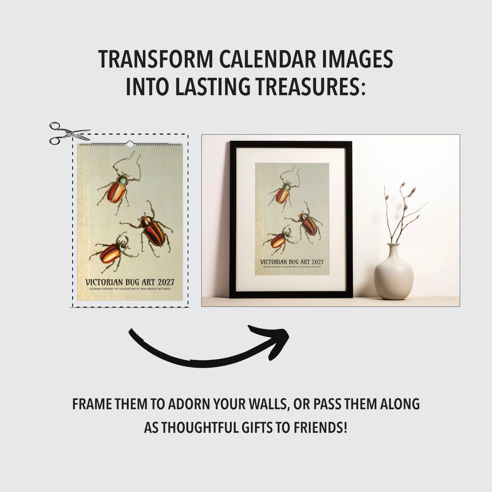 We choose a curated selection of images so every month feels intentional and this calendar becomes a true conversation starter on your wall. When the months are done, the art doesn’t have to be: cut out your favorite images and frame them as insect print décor – framed butterfly–style pieces with a real butterfly look – either to build your own mini gallery wall or to give as lasting presents to friends.