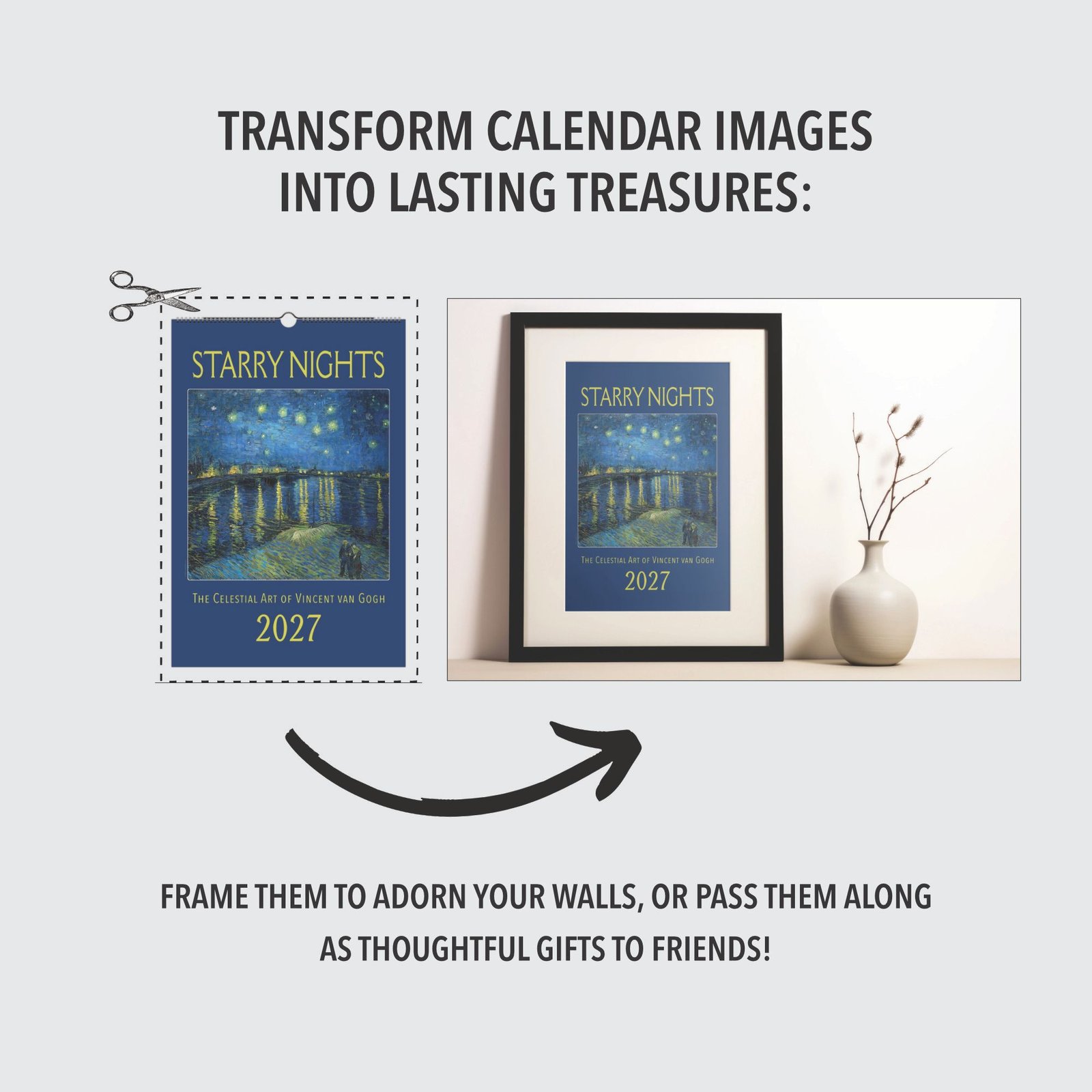 Dive into the artistic journey of Vincent Van Gogh (1853-1890), whose contributions to Post-Impressionism have illuminated the essence of vibrant color, emotive brushstrokes, and profound depth. This calendar is a homage to his unique ability to capture the raw beauty of nature and the human spirit, offering a monthly gaze into the scenes that have defined his legacy. Each image is an invitation to appreciate the depth of Van Gogh’s vision, a narrative told through the interplay of light, color, and emotion.