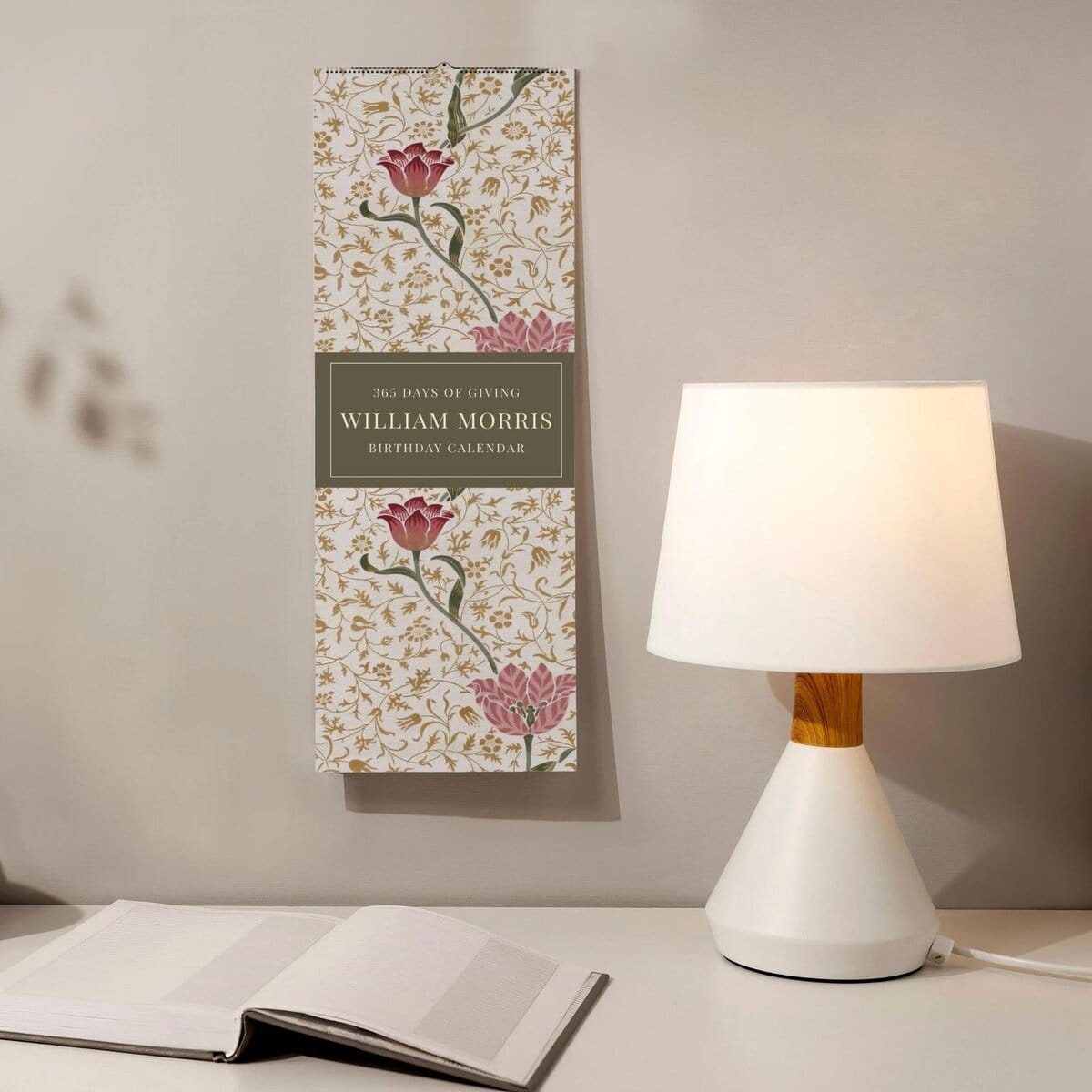 Decorative floral calendar and lamp on deskWilliam Morris Birthday Calendar (Medway Cover)