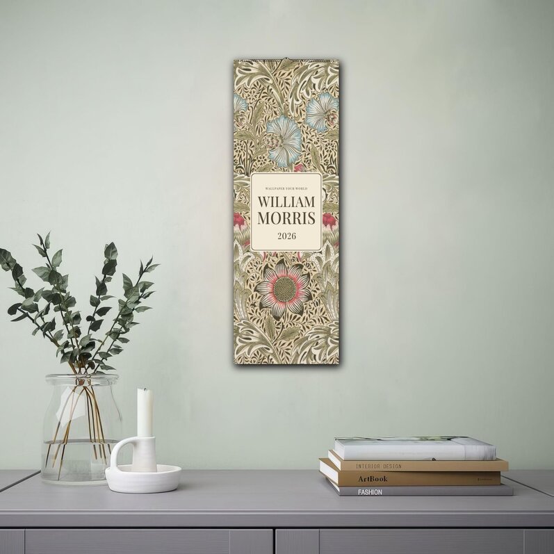 elebrate the enchanting world of William Morris (1834-1896) with this vintage style wall calendar, where every month brings a new flourish of floral patterns into your home. The cover showcases the striking Corncockle design, originally registered in 1883 and crafted at the renowned Merton Abbey Tapestry Works. With its intricate botanical motifs and timeless elegance, this calendar pays tribute to heritage decor and the enduring beauty of Morris patterns. Let the detailed artwork and rich, vintage style transform your kitchen decor or favorite space into a haven of creativity and charm.
