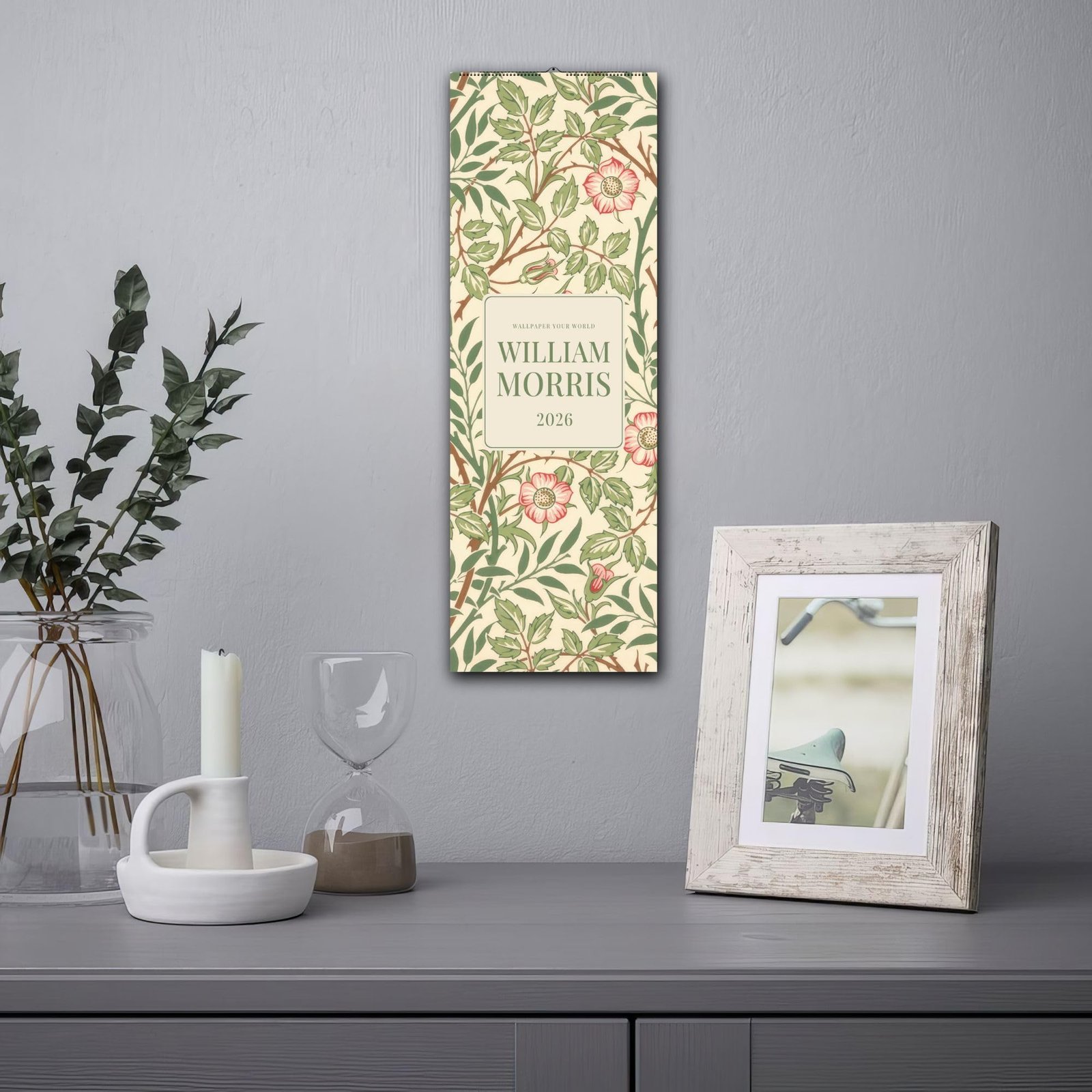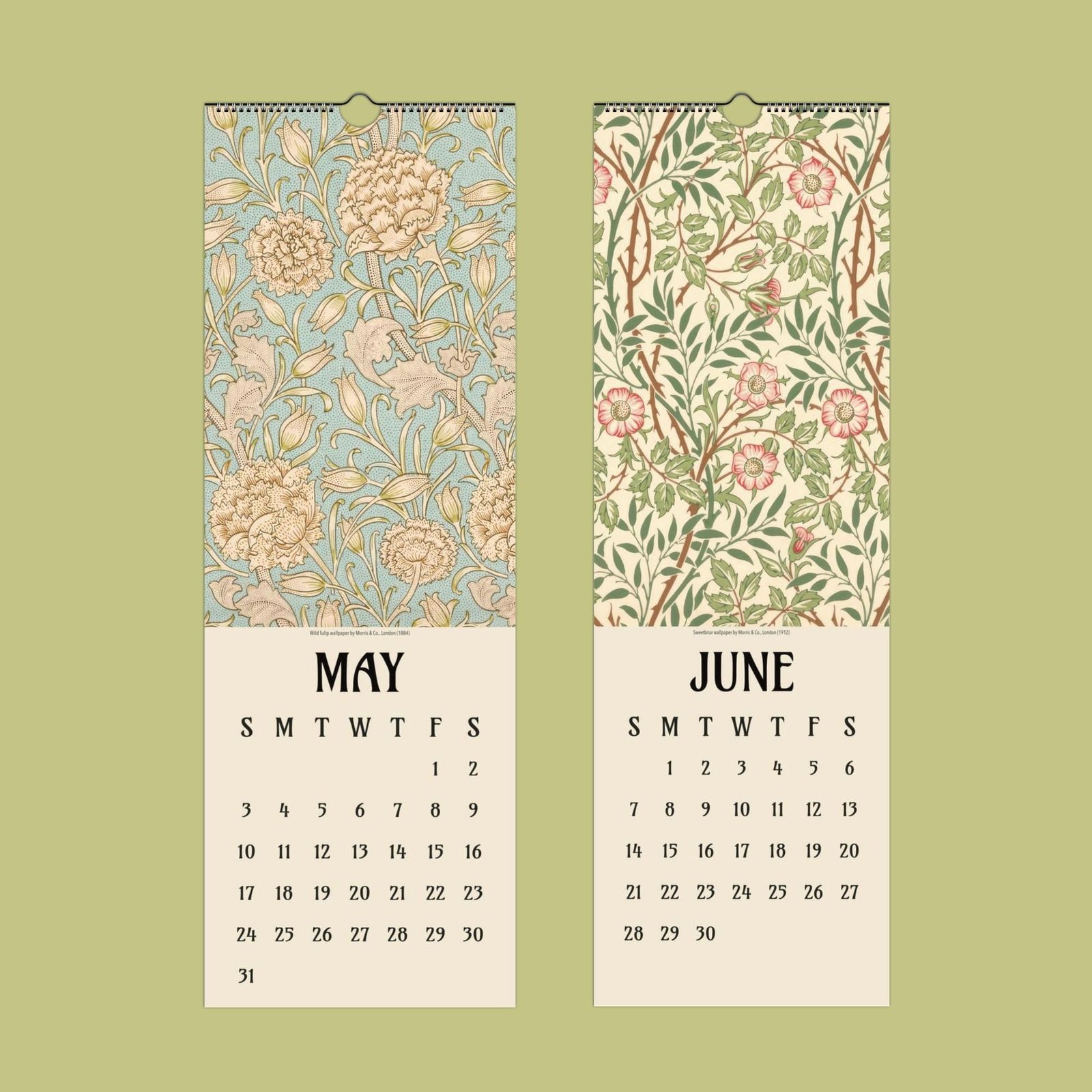 Celebrate the enchanting world of William Morris (1834-1896) with this vintage style wall calendar, where every month brings a new flourish of floral patterns into your home. The cover features the beautiful Sweet Briar design—originally created as a wallpaper in 1912—showcasing a soft cream background, climbing rose stems in green and soft brown, and delicate pink sweet briar roses. Inspired by the legendary artist and designer, this calendar is a tribute to heritage decor and the timeless beauty of Morris patterns. Let the intricate artwork and rich, vintage style transform your kitchen decor or favorite space into a haven of creativity and charm.