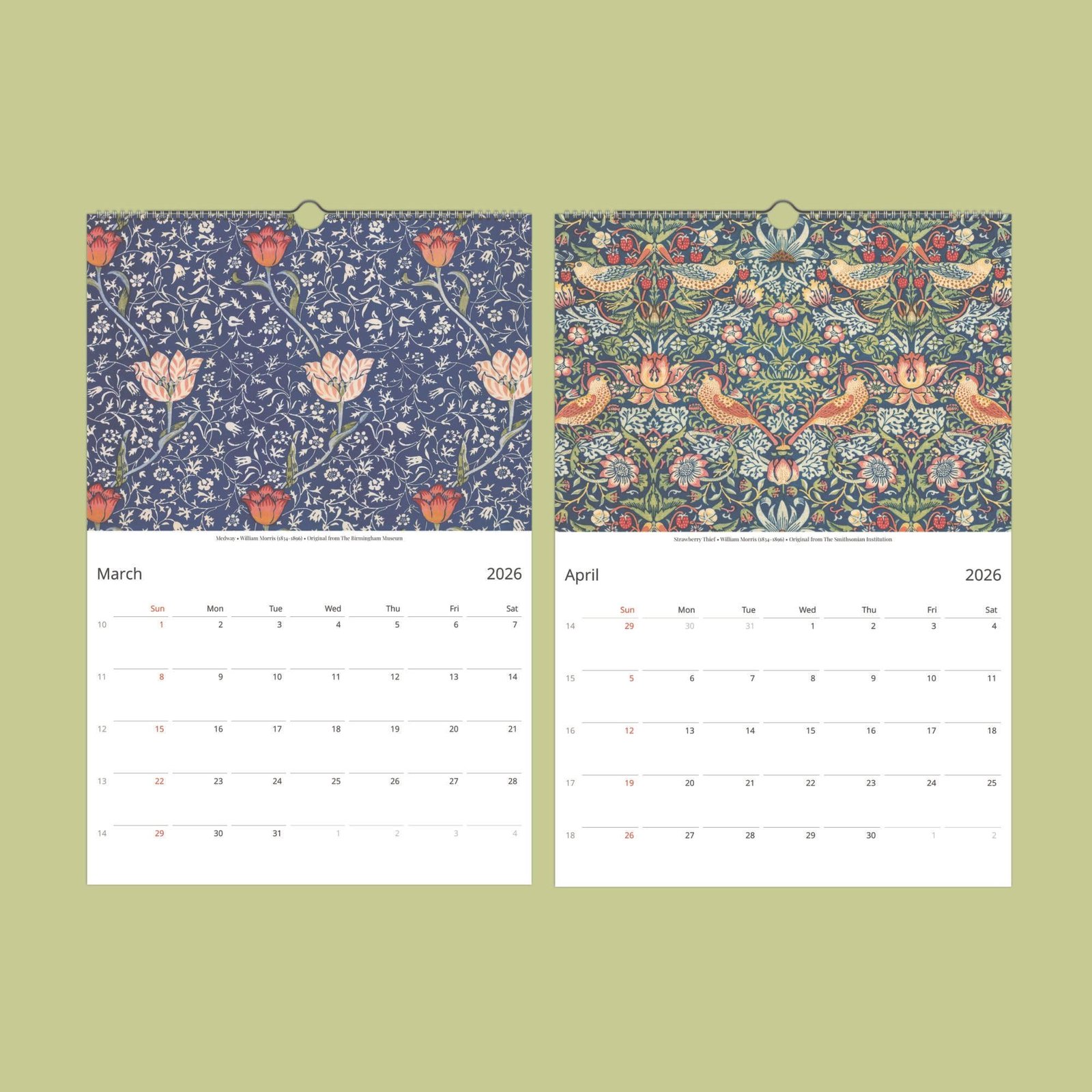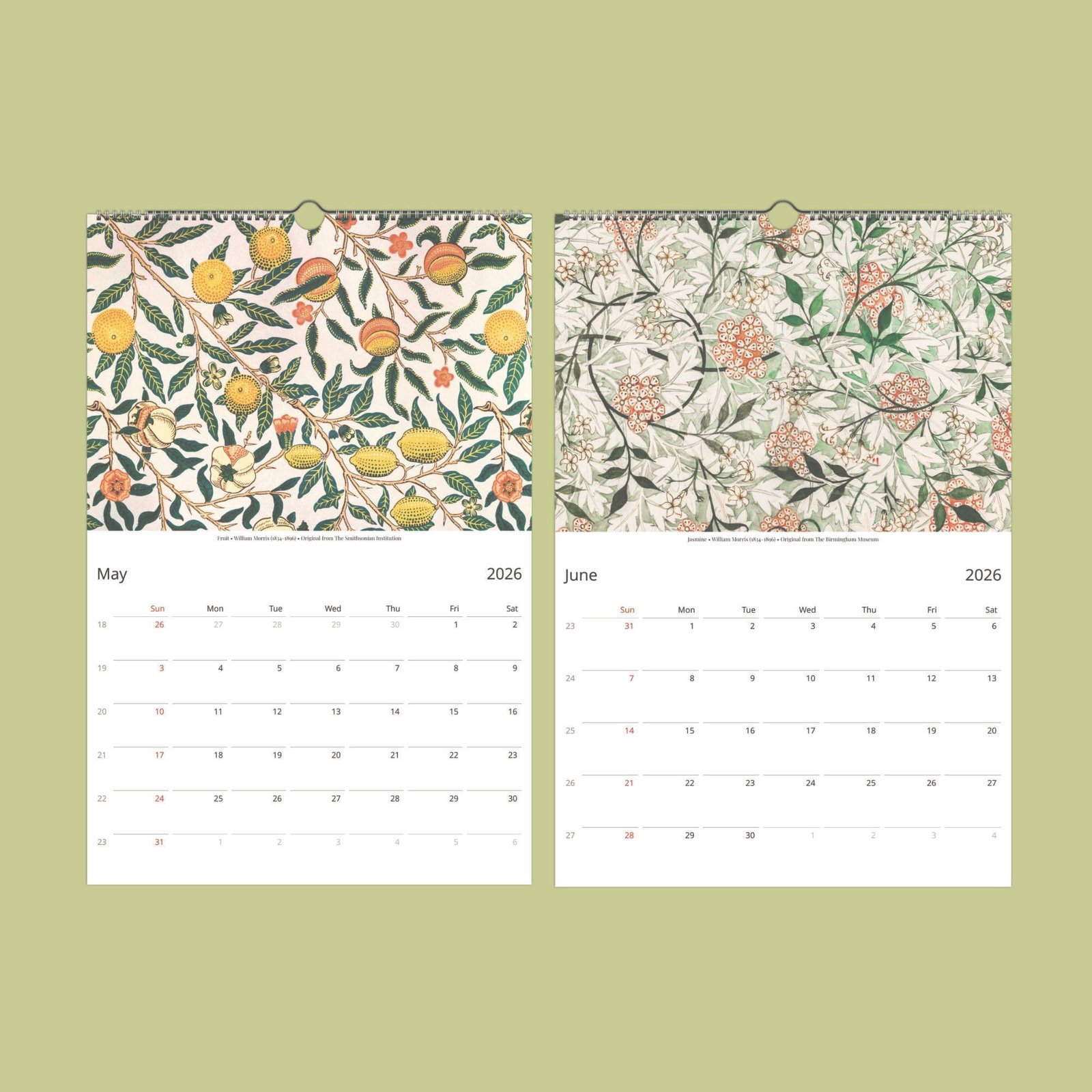Each month features a curated selection of Morris’s most beloved patterns, transforming your space into a gallery of conversation-starting art. Once the year is complete, simply cut out your favorite images to frame and enjoy as lasting morris wall art—ideal for your own home or as charming presents for friends. Elevate your decor with this versatile and beautiful wall decor calendar—add it to your cart today!